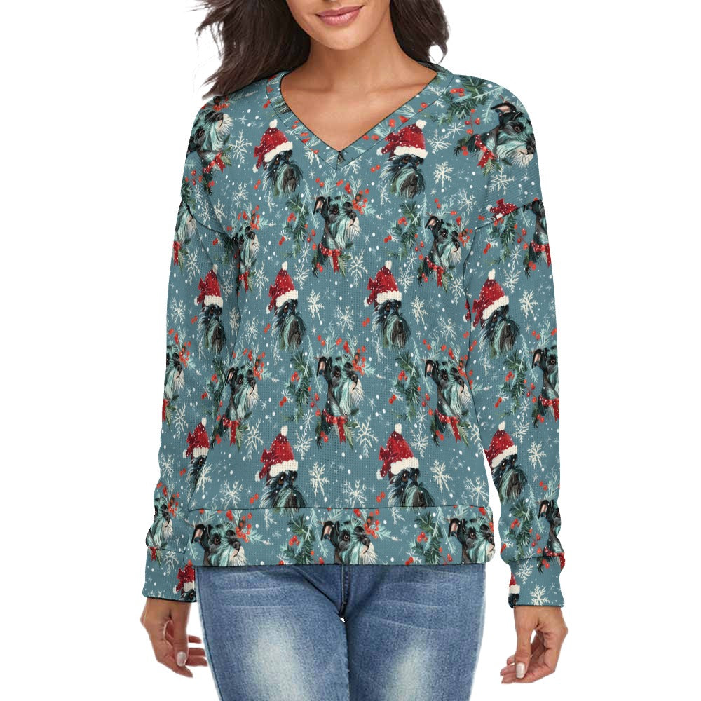 Santa Paws Schnauzer's Women's V-Neck Christmas Sweater