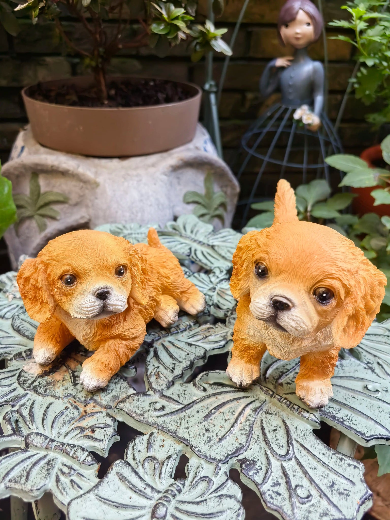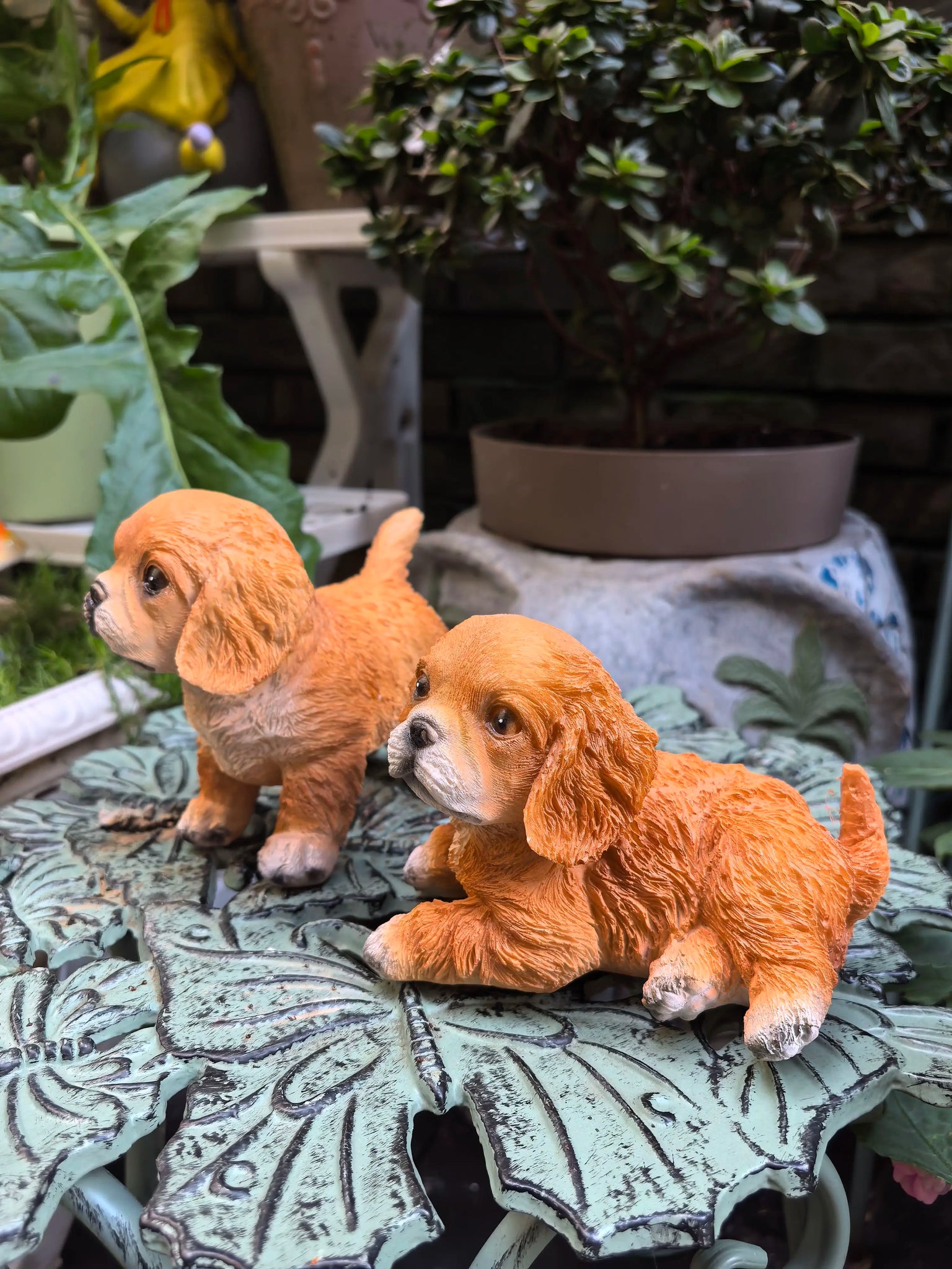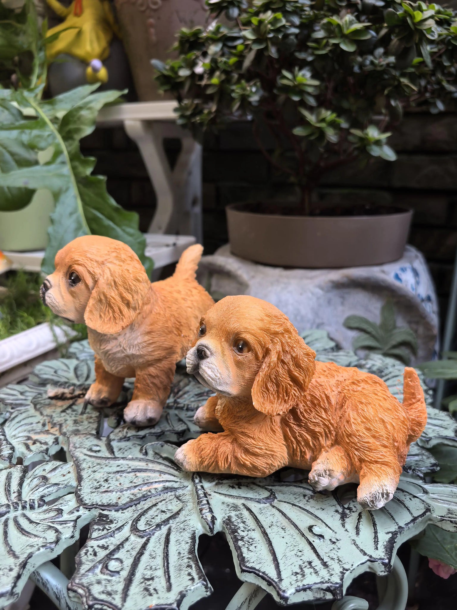 Precious Golden Retriever Puppies Resin Statue Figurines - 2 pcs pair