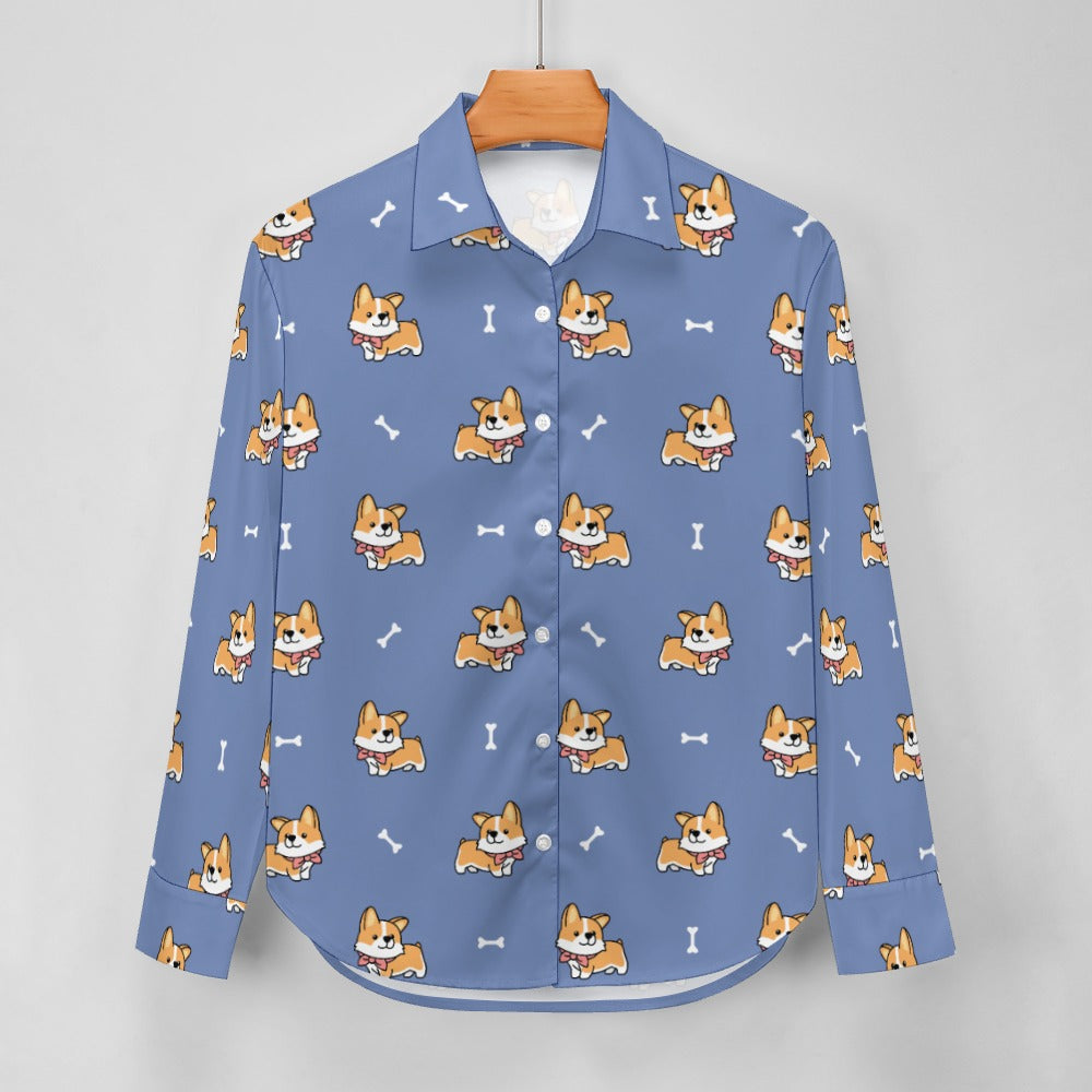 Elegant Corgi Delight Women's Shirt-S-CornflowerBlue-12