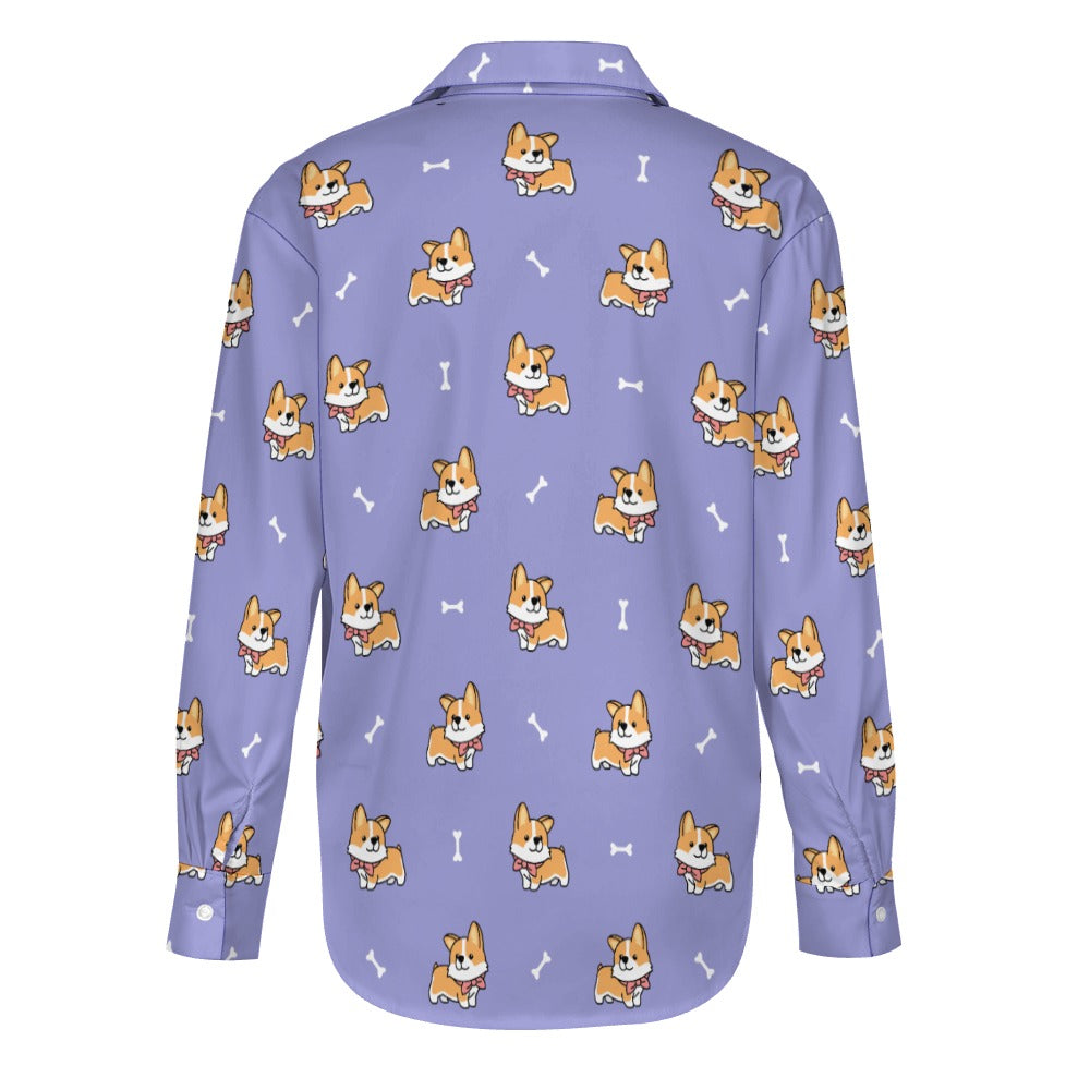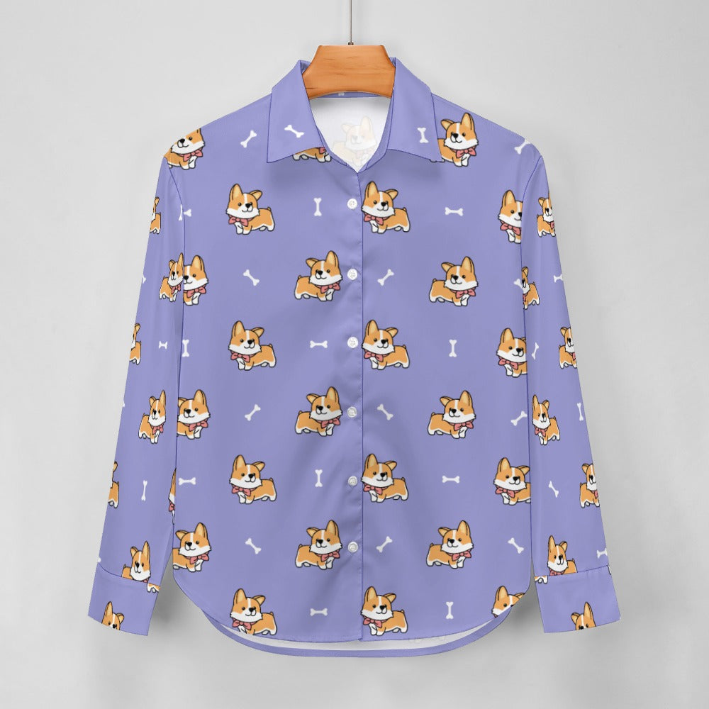 Elegant Corgi Delight Women's Shirt-S-PaleVioletRed-1