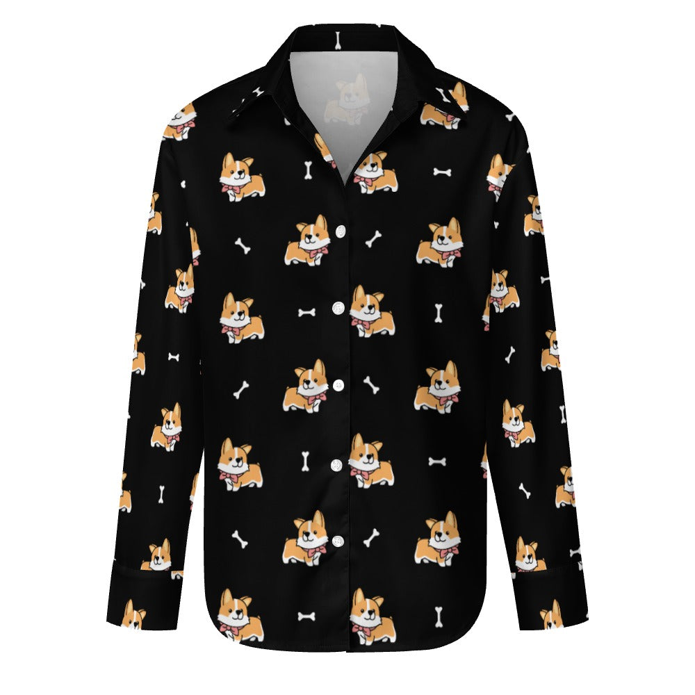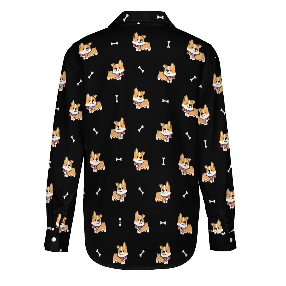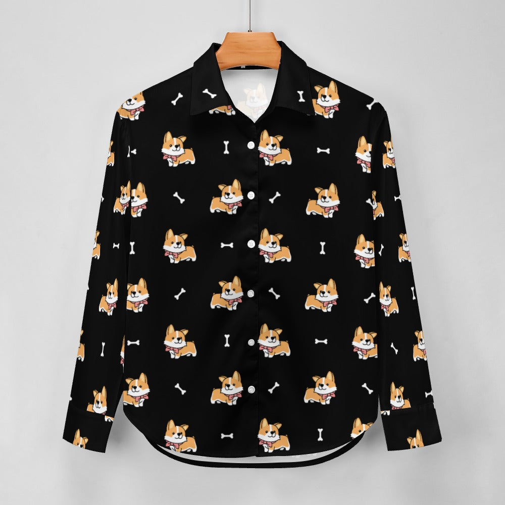 Elegant Corgi Delight Women's Shirt-S-Black-24