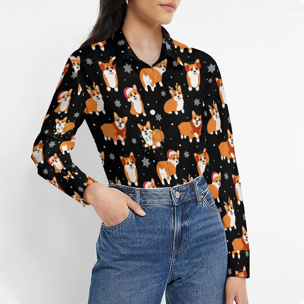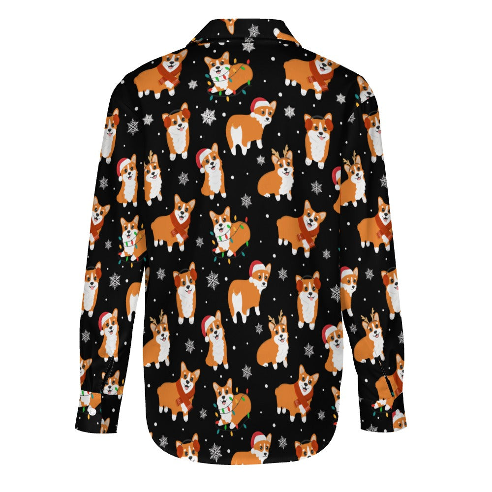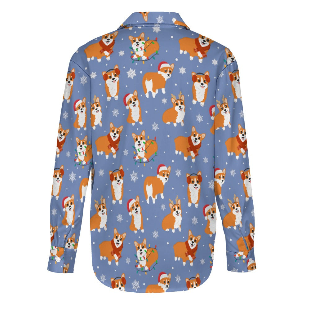 Festive Corgi Snowflake and Christmas Women's Shirt-17