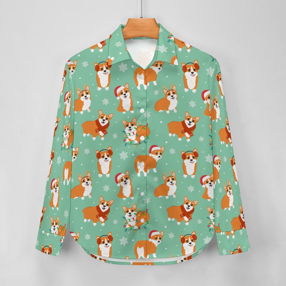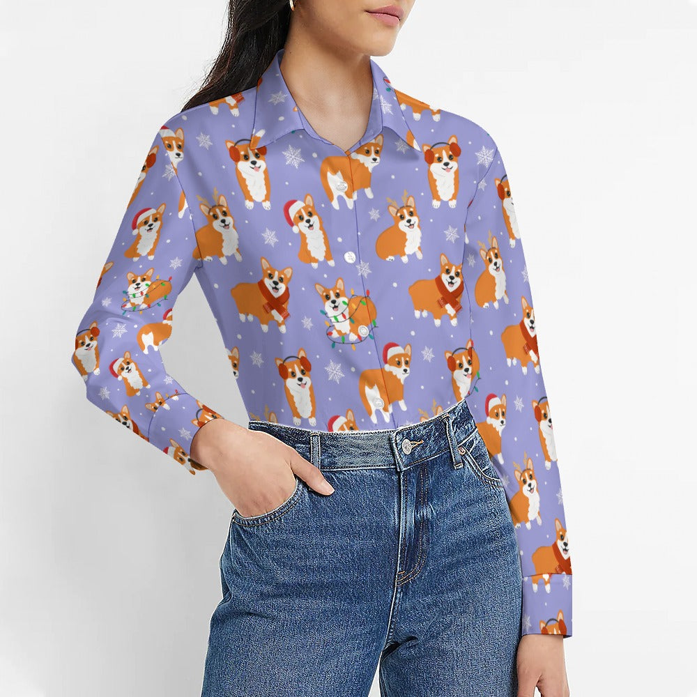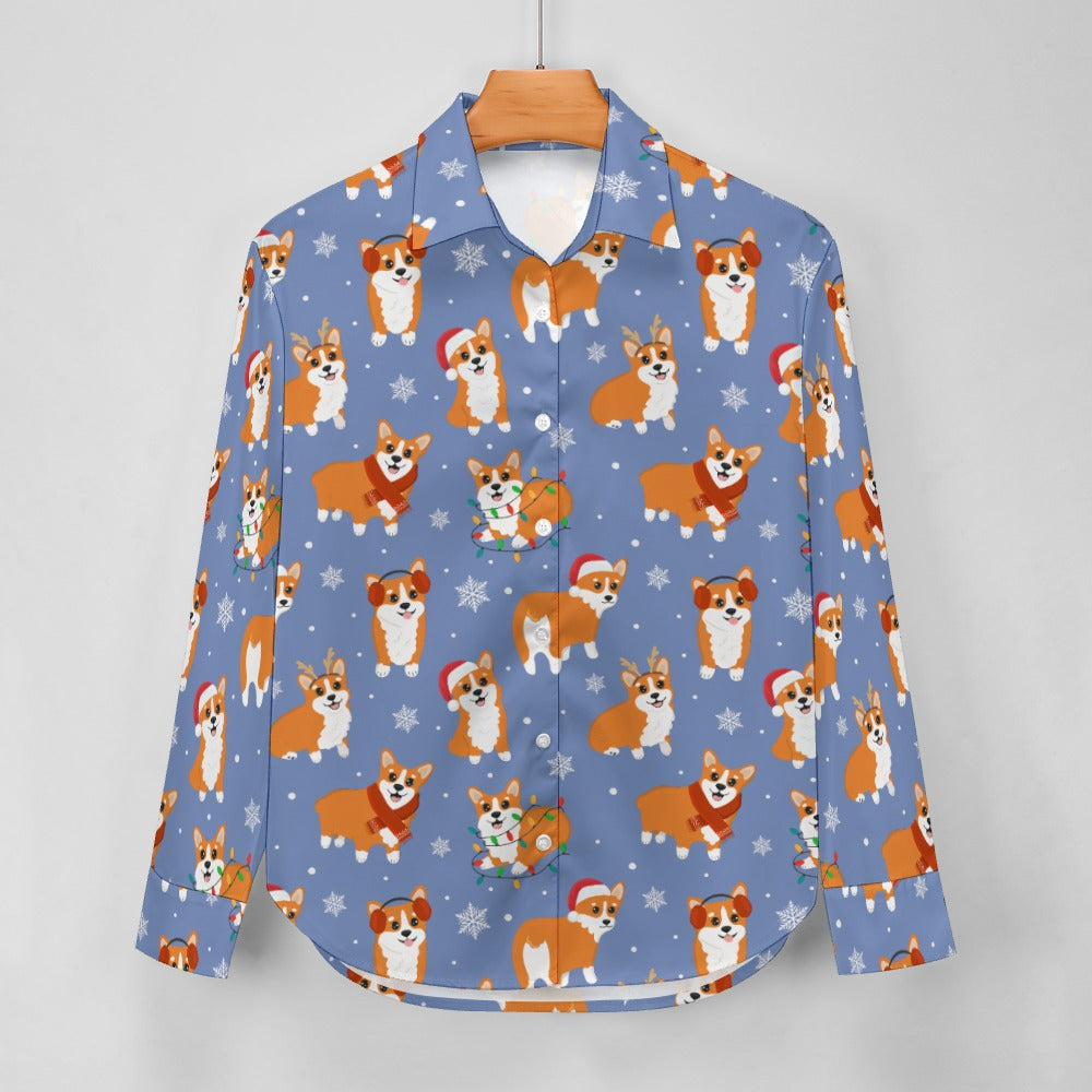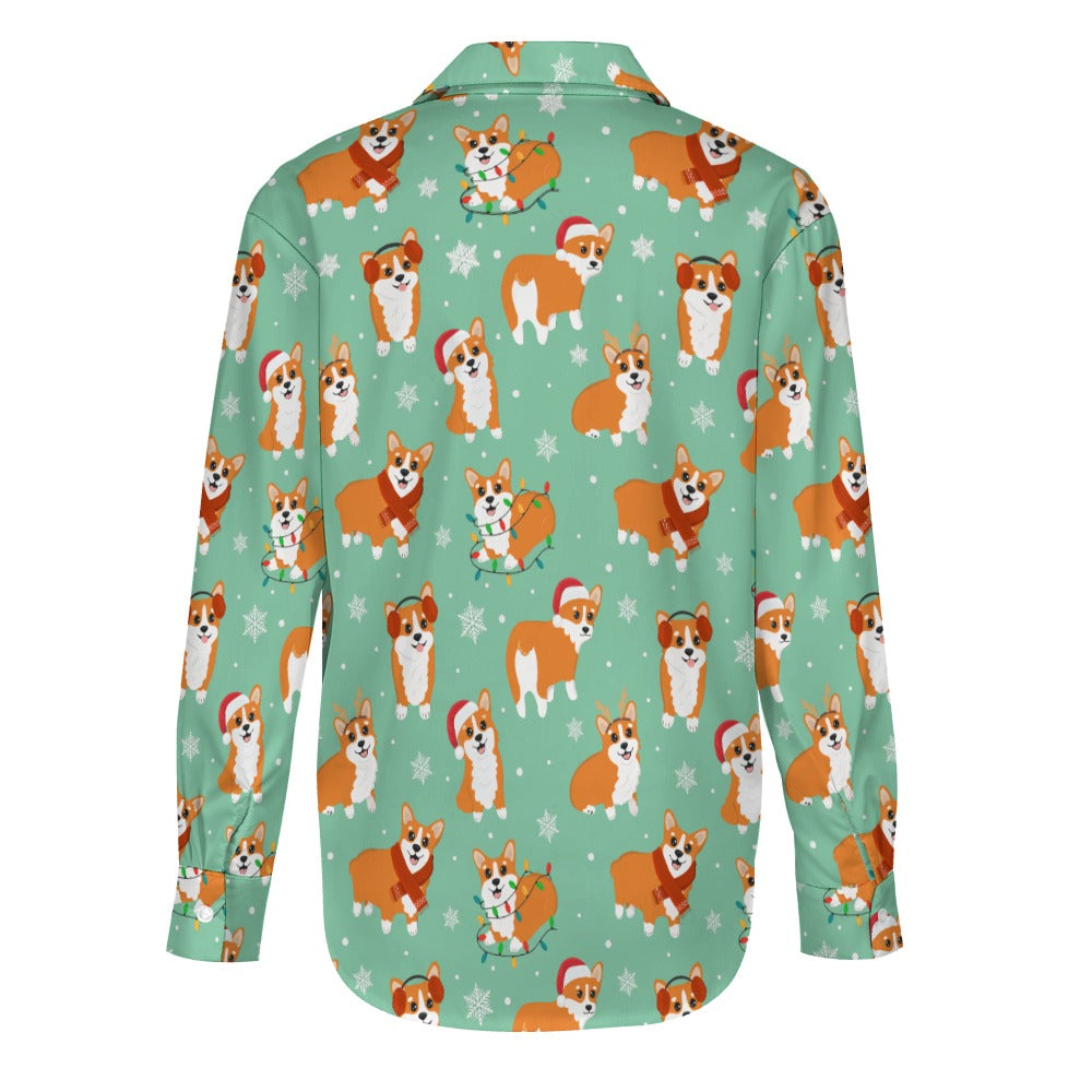 Festive Corgi Snowflake and Christmas Women's Shirt-17