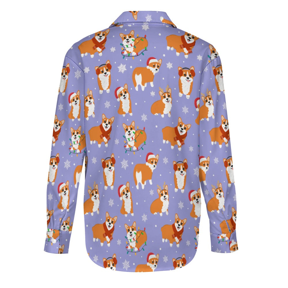 Festive Corgi Snowflake and Christmas Women's Shirt-10