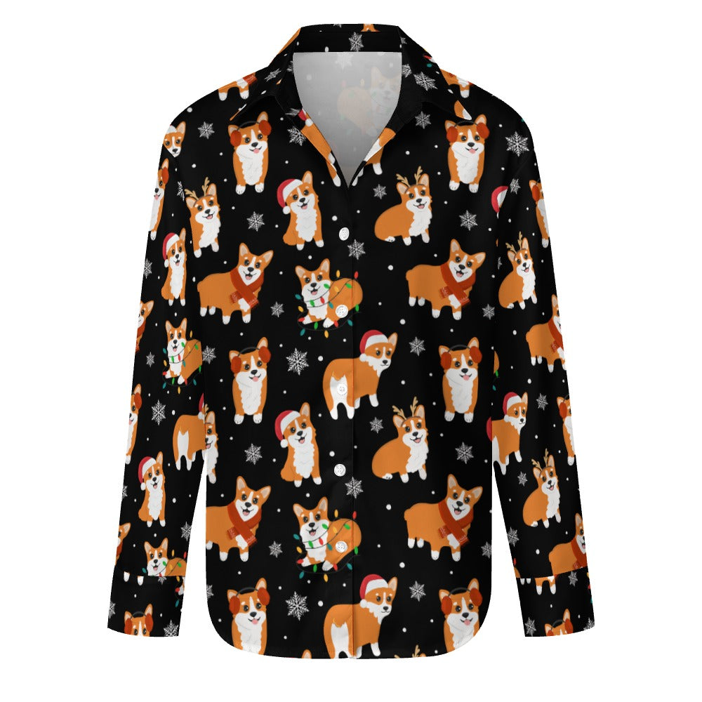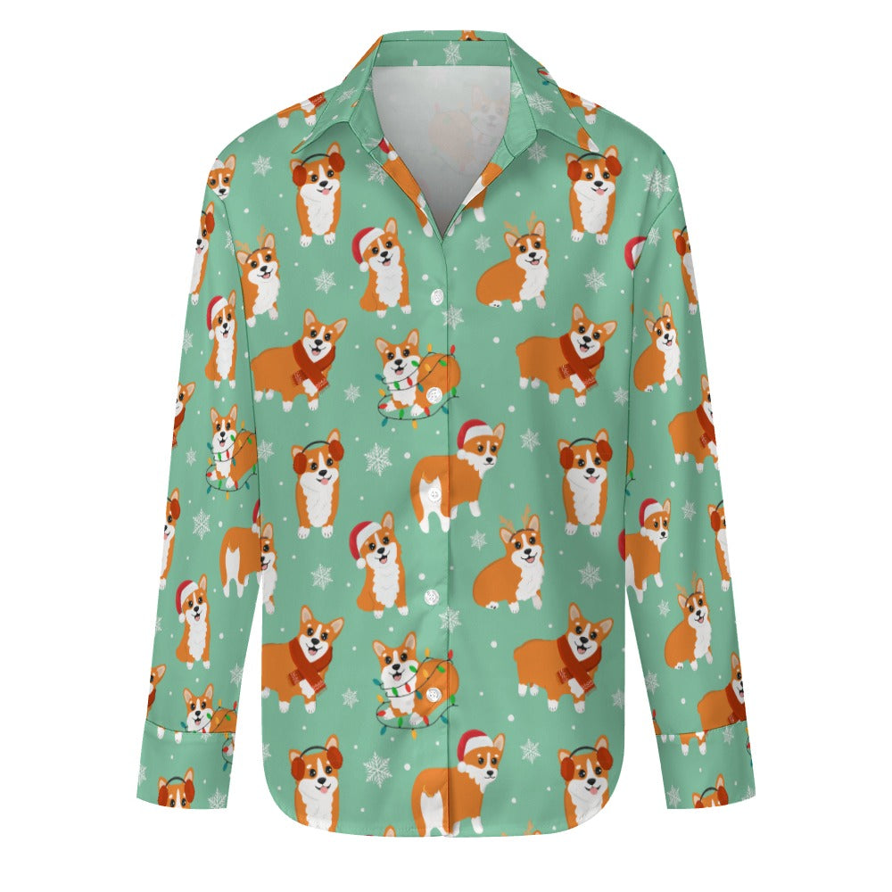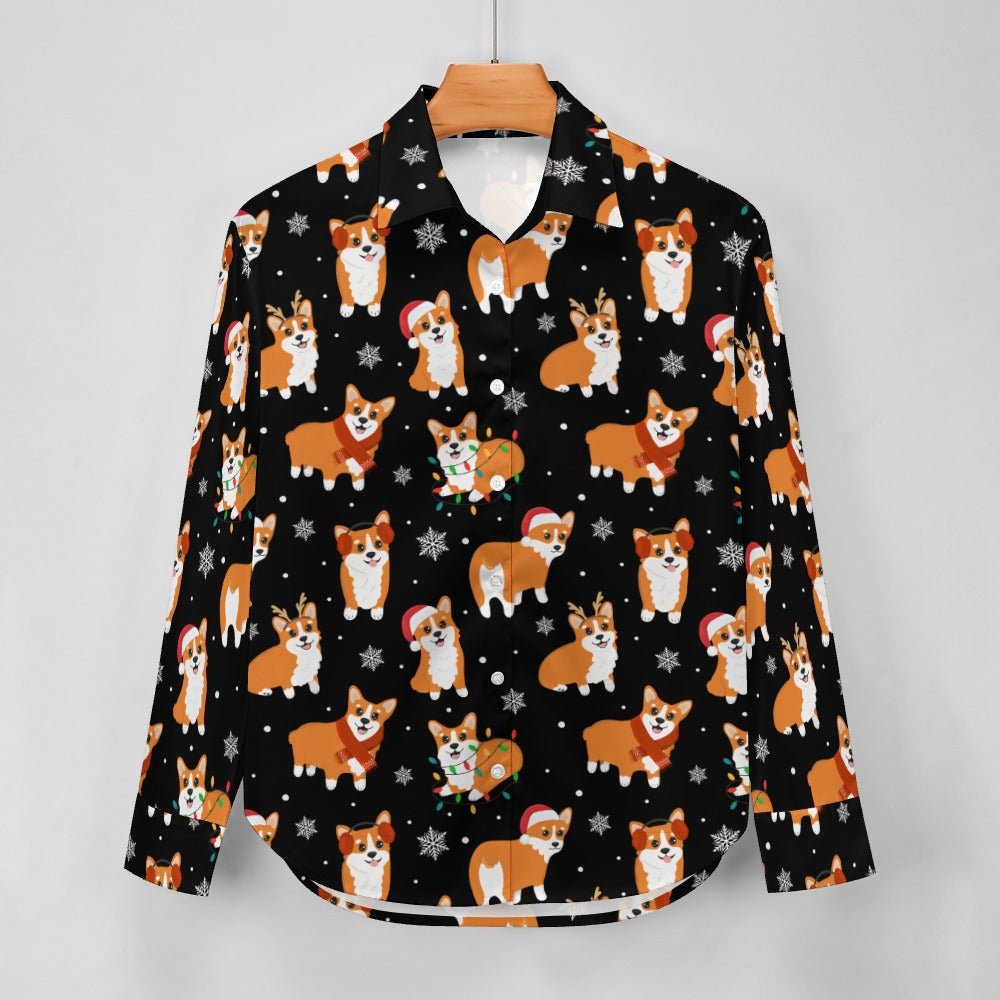 Festive Corgi Snowflake and Christmas Women's Shirt-15