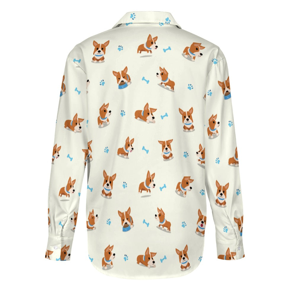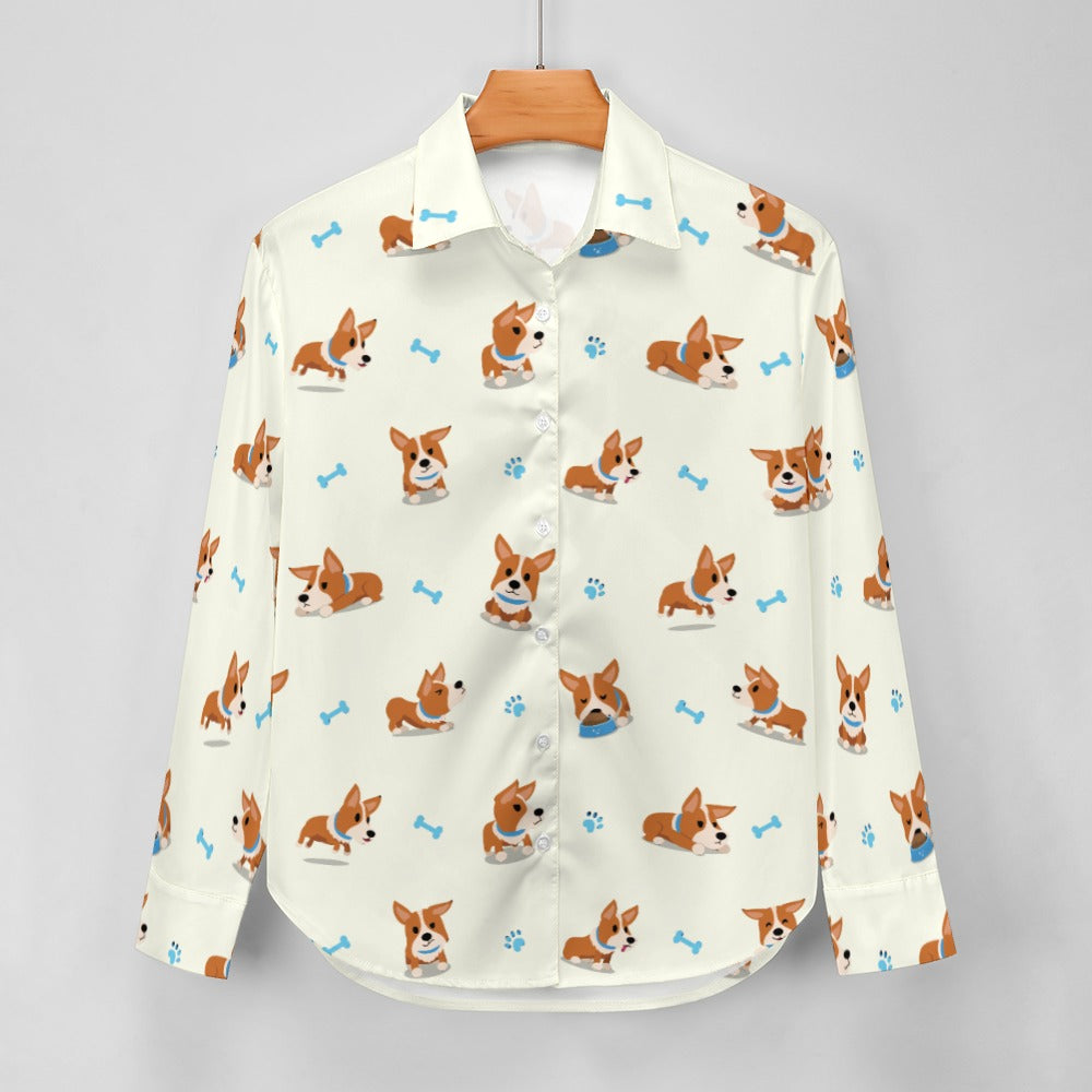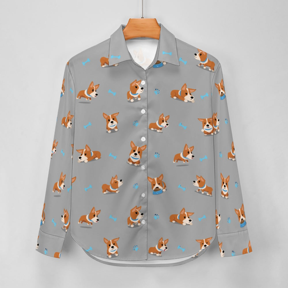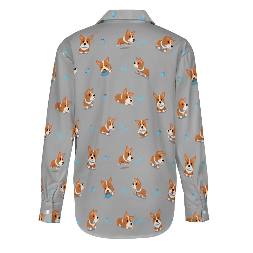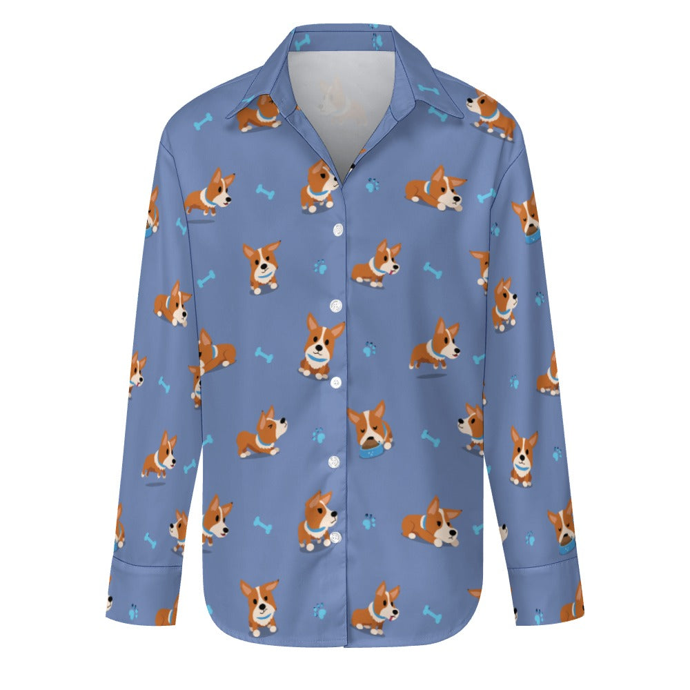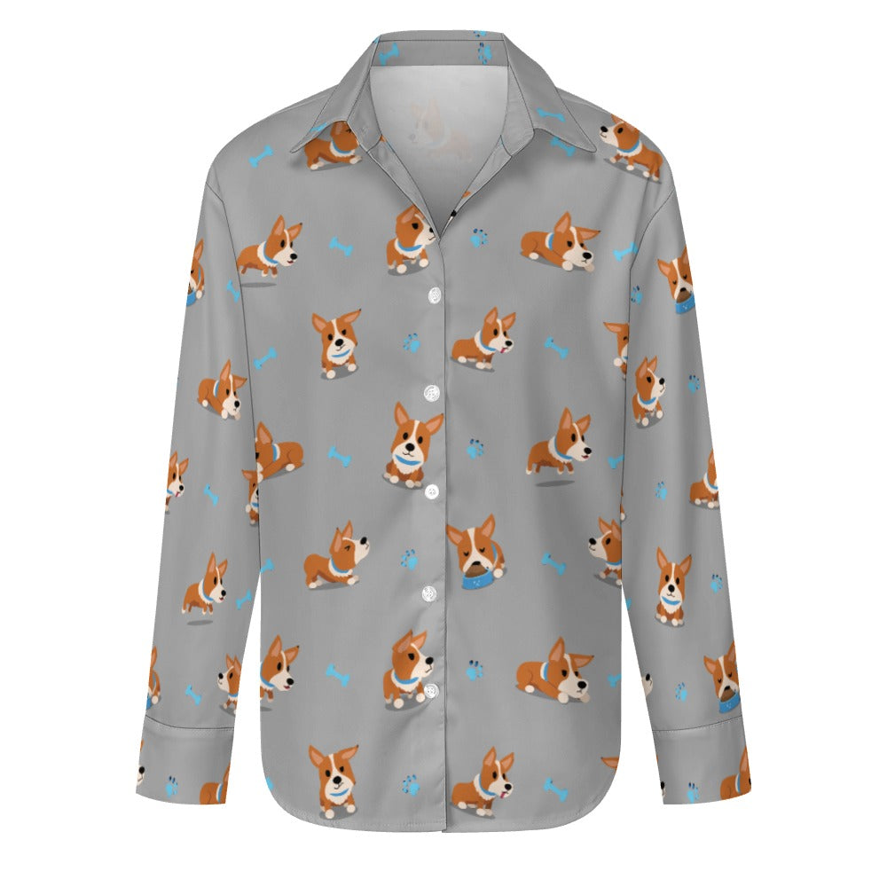 Celebrate your love for Corgis with our Playful Corgi Adventures & Treats Women's Shirt! This delightful shirt features cheerful Corgis in playful poses, bringing joy and personality to your wardrobe.