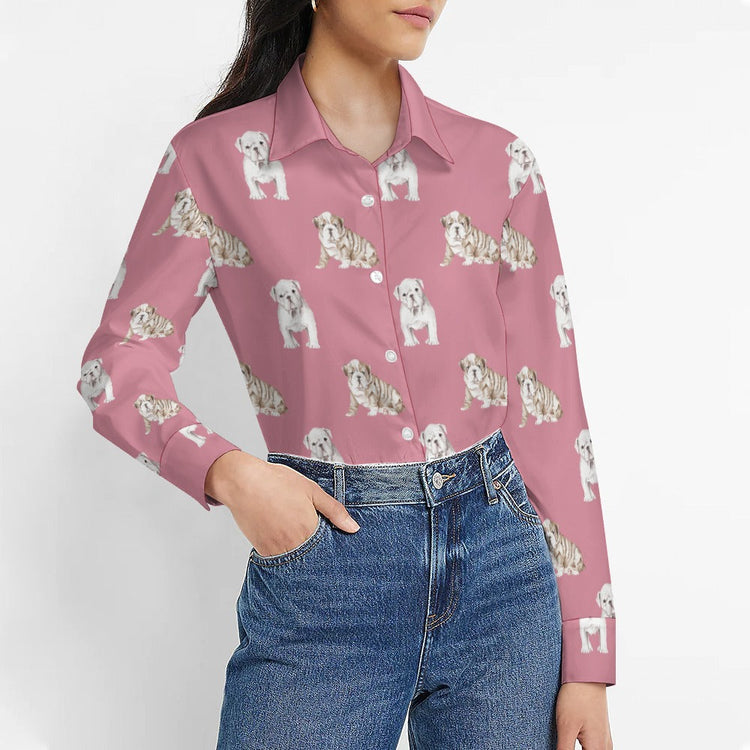 English Bulldog Shirt for Women - Watercolor Fawn White English Bulldog Puppies
