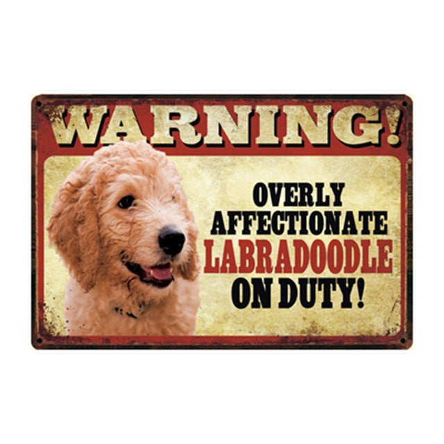 Warning Overly Affectionate Labradoodle on Duty Tin Poster