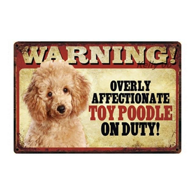 Show your love for your favorite Toy Poodle with our charming Warning Overly Affectionate Toy Poodle on Duty Tin Poster! This delightful piece is perfect for any proud Poodle parent or as a heartfelt gift for a fellow dog lover.
