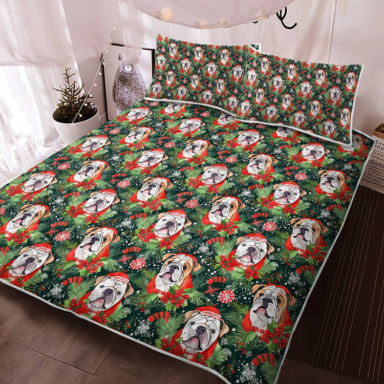 Celebrate the holidays with our Santa's Helper English Bulldog Quilt Blanket Bedding Set!