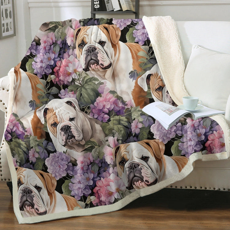 Pink and Purple Petal Bulldogs Soft Warm Fleece Blanket