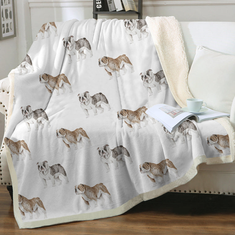 Watercolor Blue Brindle English Bulldogs Fleece Blanket - 8 Colors-Blanket-Bedding, Blankets, English Bulldog, Home Decor-Crisp White-Single-22