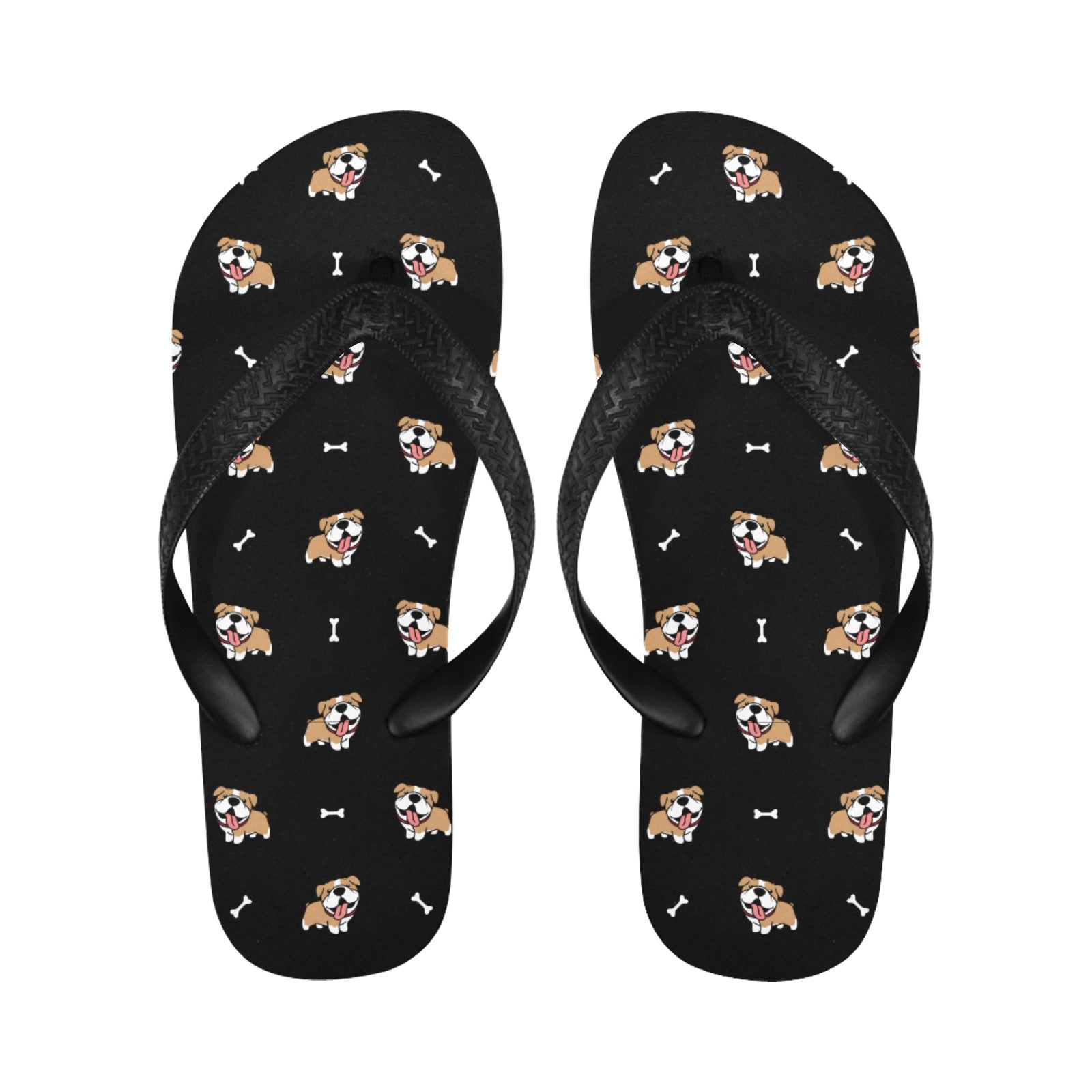 These delightful slippers feature playful bulldogs with their tongues out, surrounded by whimsical bones, perfectly capturing the breed's cheerful spirit.