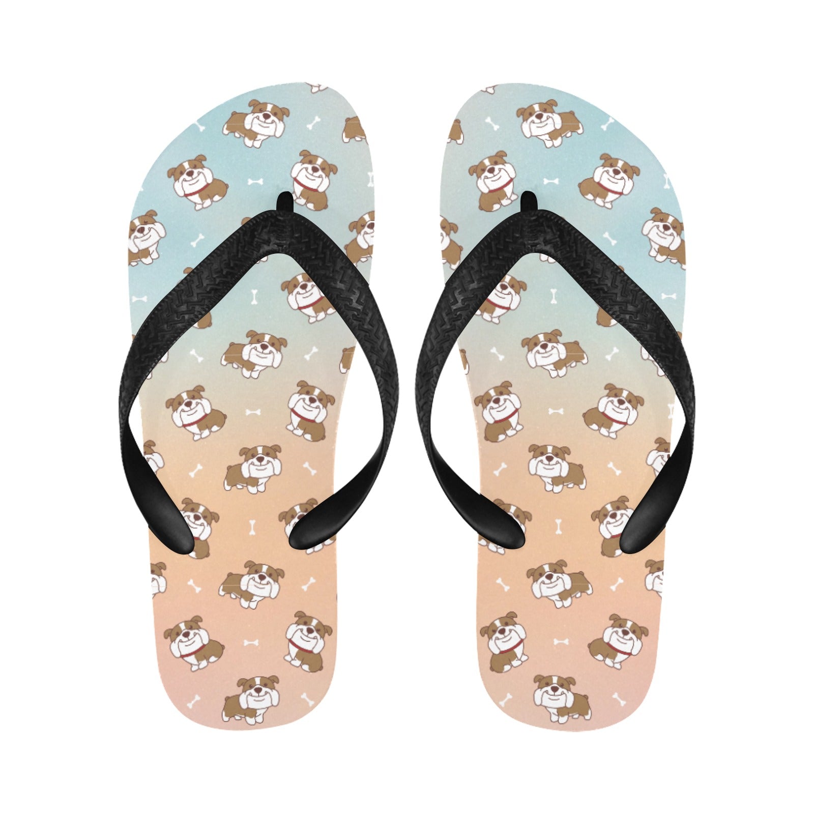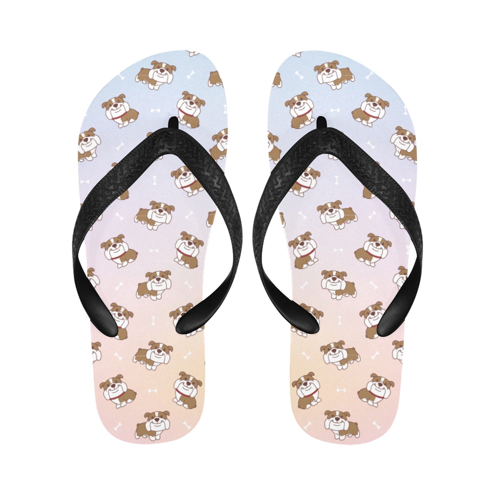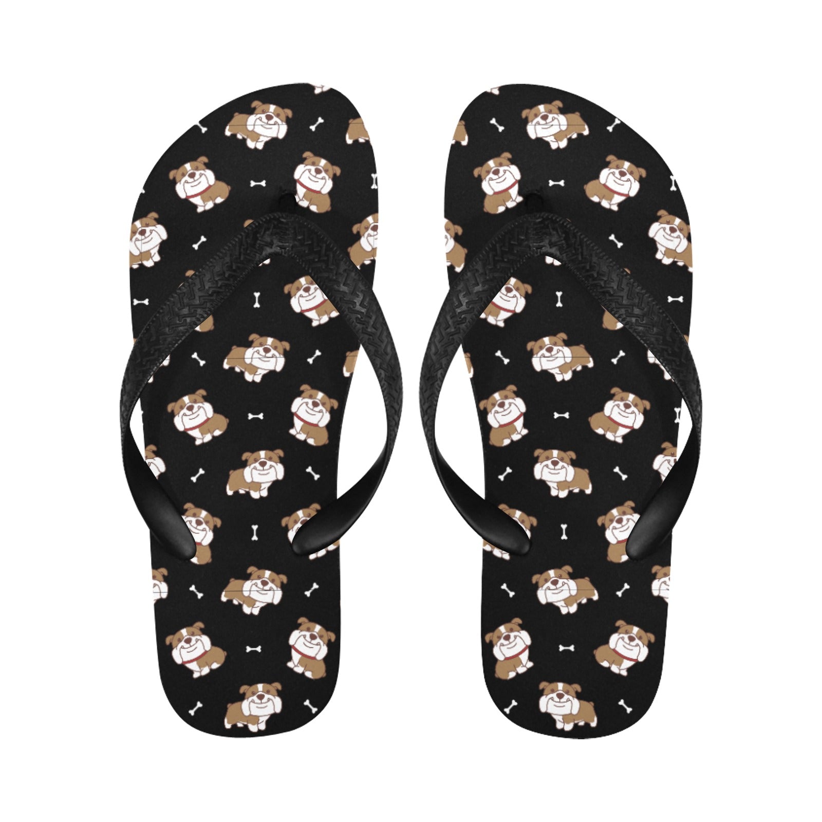 These delightful slippers feature charming English Bulldog illustrations, each radiating happiness with their wrinkled faces and stocky builds.