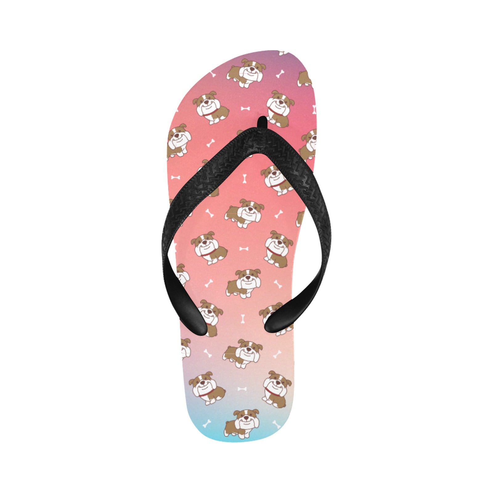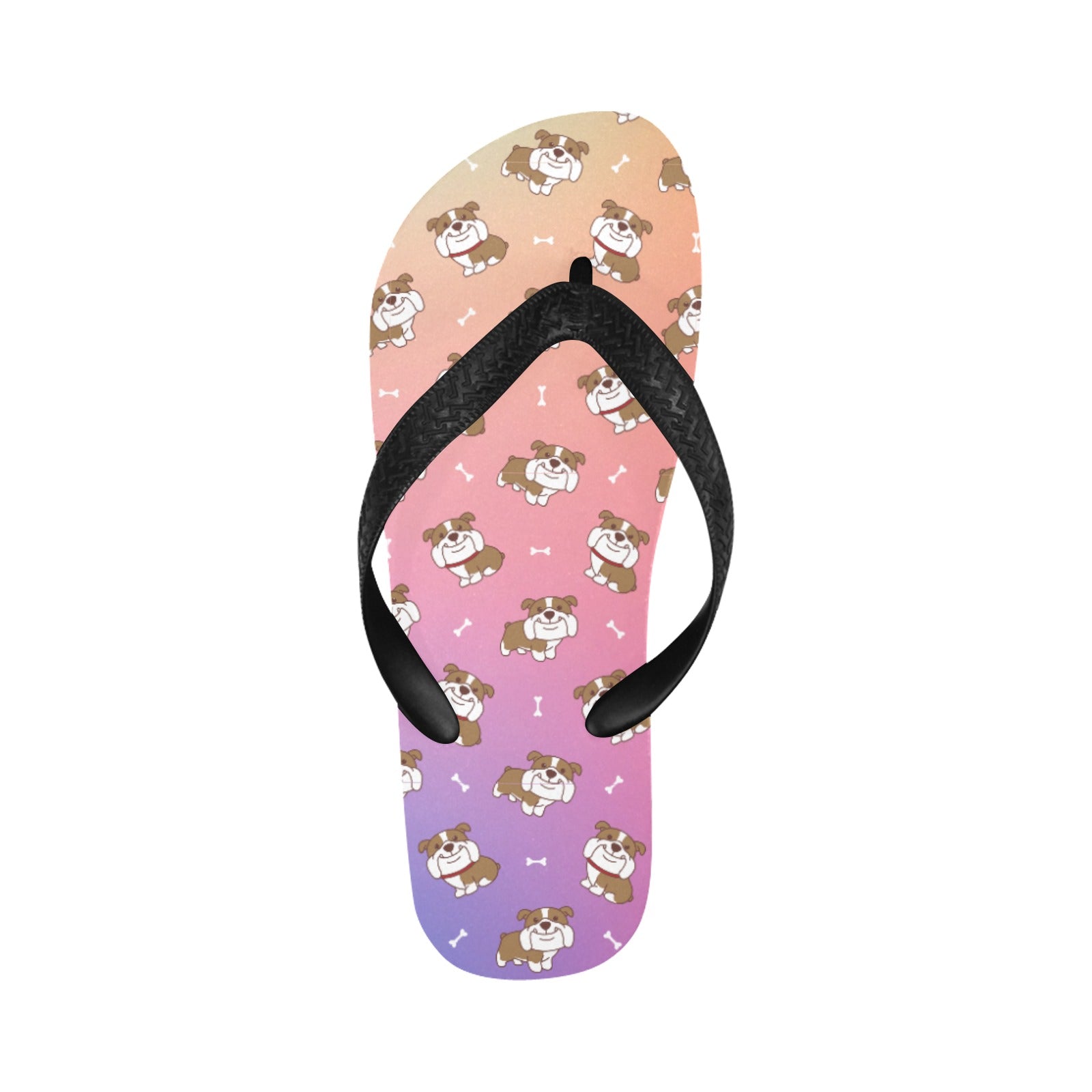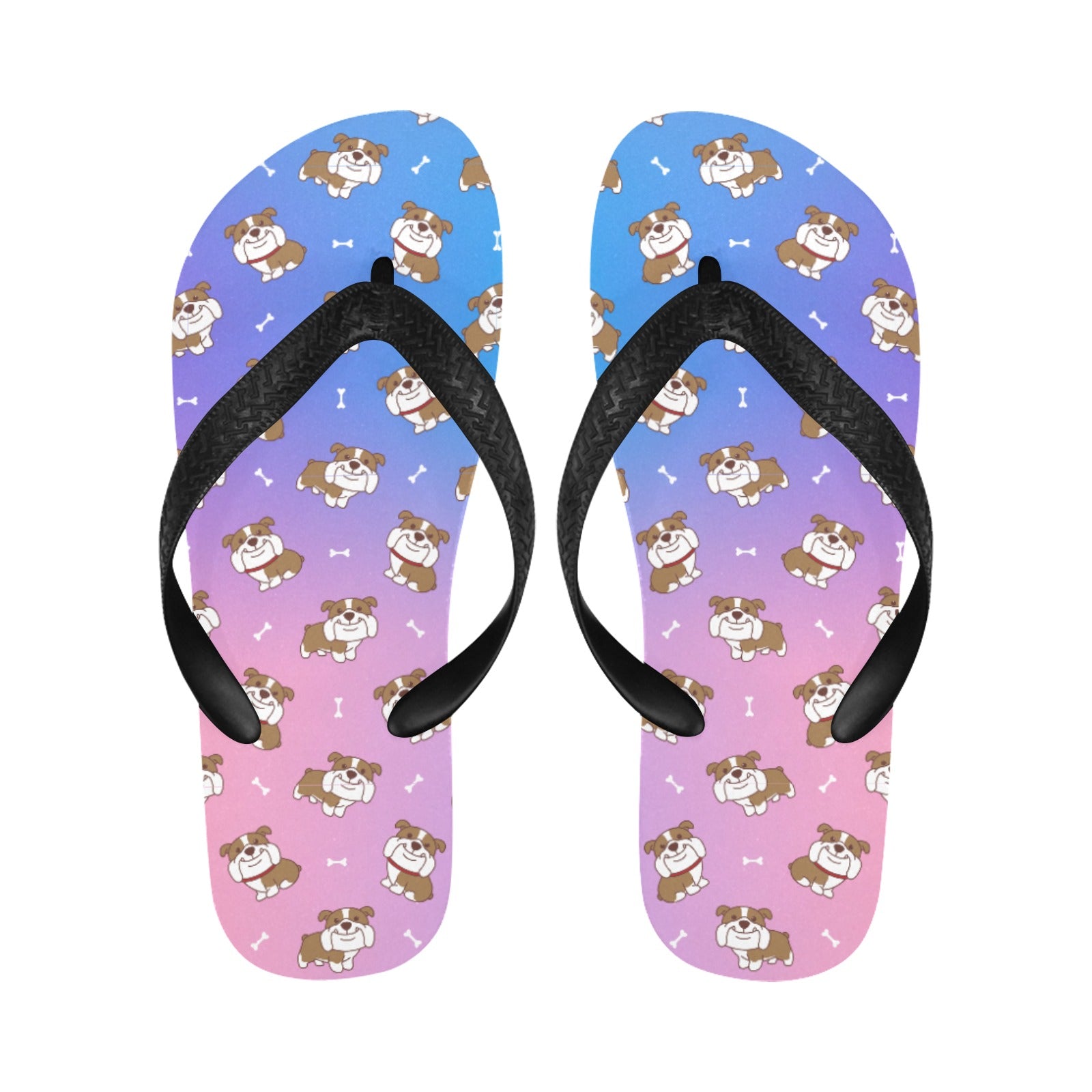 Adorned with playful bone elements, the design creates a balanced and visually appealing composition. Available in seven stunning gradients, including Blush Horizon and Tropical Radiance, these slippers are perfect for any Bulldog lover.