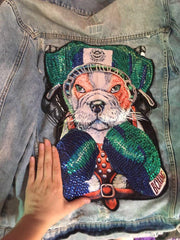 Flaunt your English Bulldog loving personality with our handmade DIY sew-on English Bulldog patch. This adorable patch, adorned with sequins, will transform any plain T-Shirt or Jacket into an English Bulldog lover's dream. Available in two sizes, Large and Extra Large, this patch is the perfect addition to your Bulldog-themed collection.