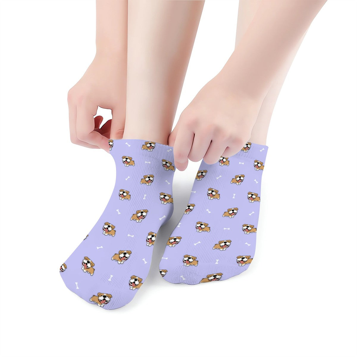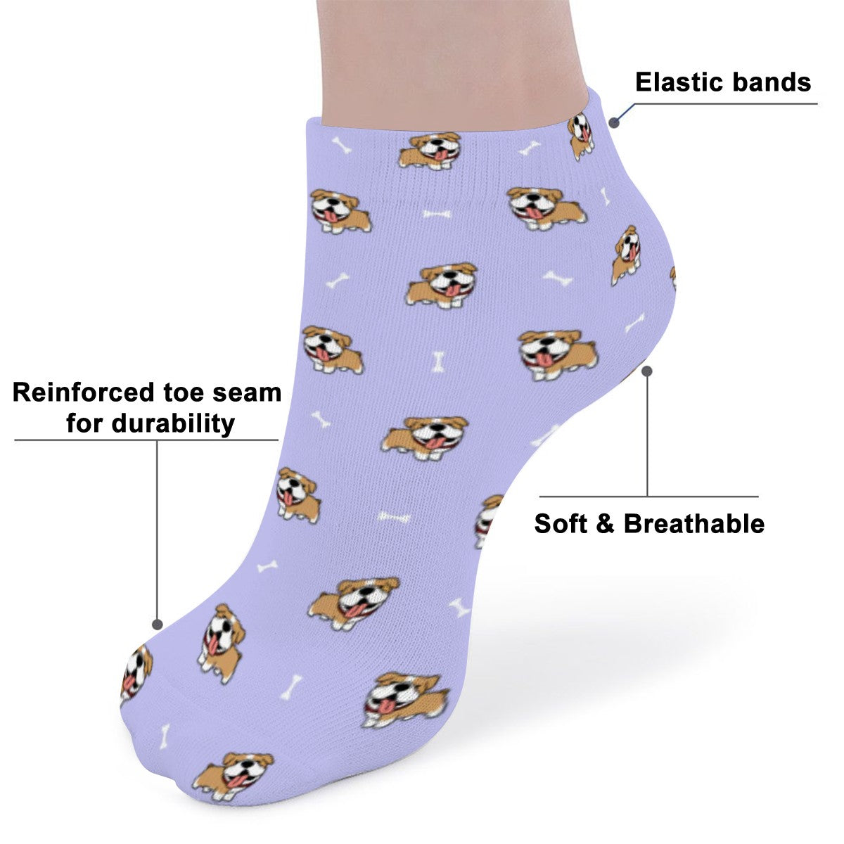 English Bulldog Socks - Ankle Length - Happy Happy English Bulldog Love