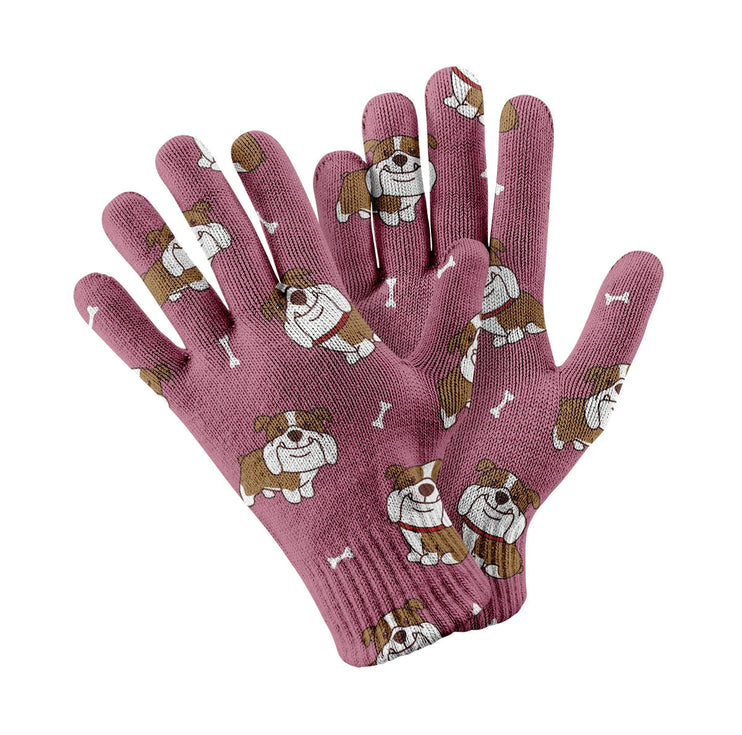Happy English Bulldog Love Touch Screen Gloves