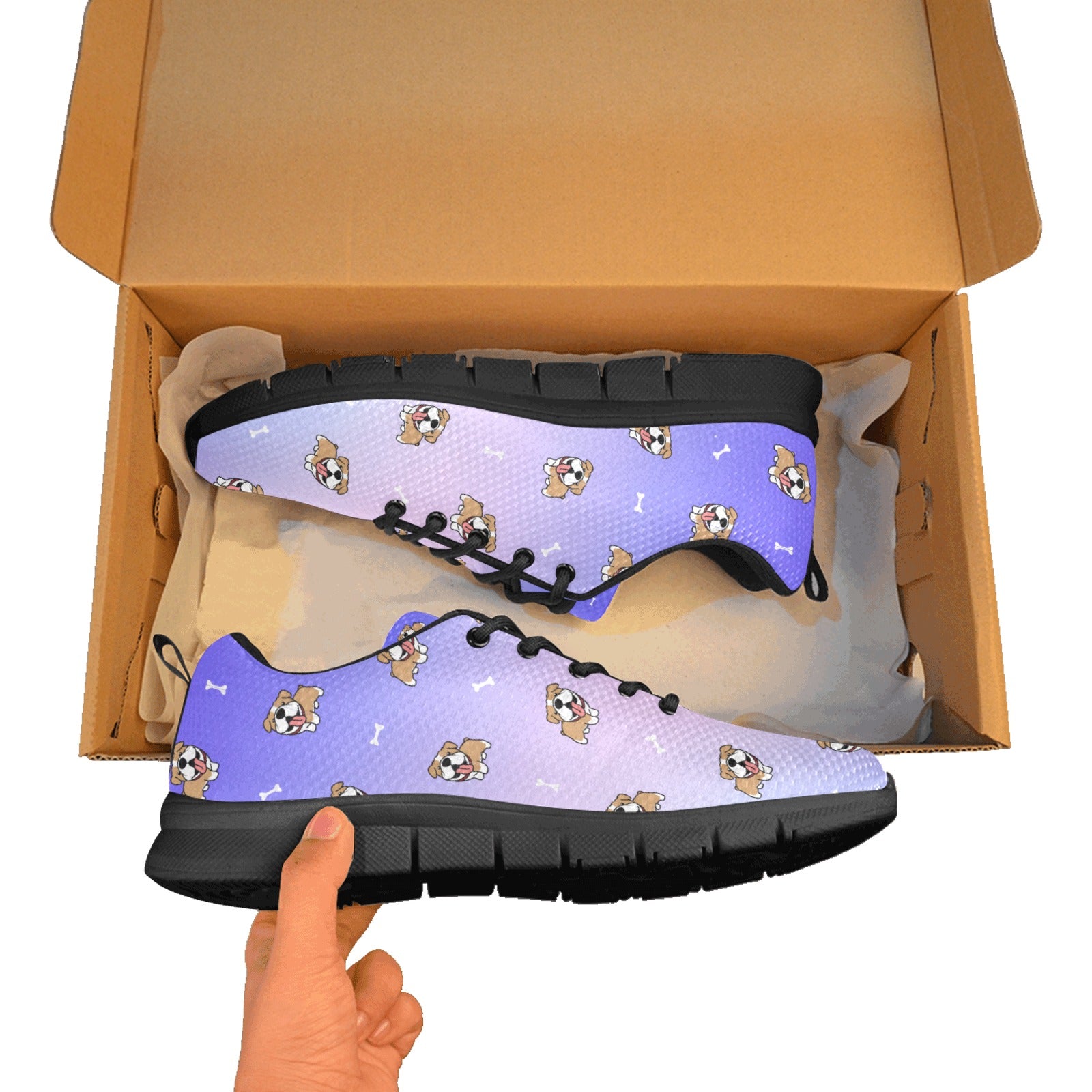 These playful sneakers feature cheerful bulldogs with their tongues out, surrounded by whimsical bones, perfectly capturing their affable spirit.