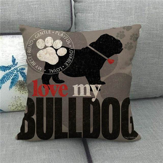 Image of a super cute english bulldog cushion cover in the beautiful English Bulldog loving design