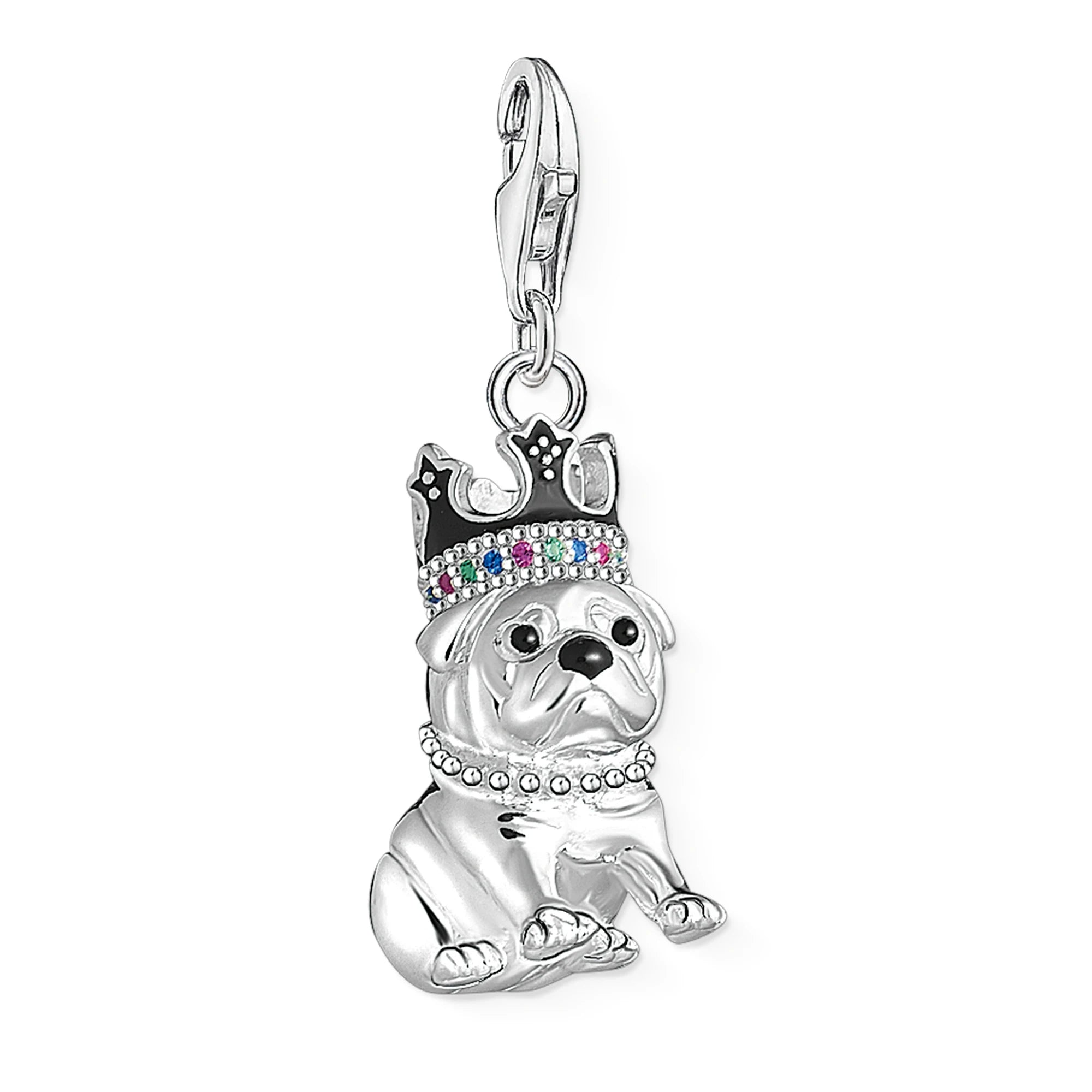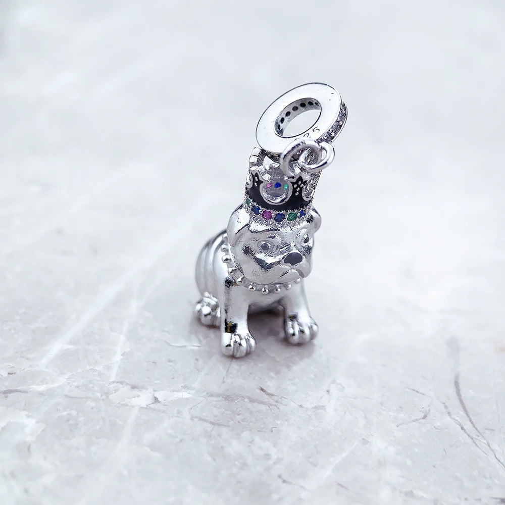 Royal Cutie English Bulldog Silver Charm – Jeweled Crown