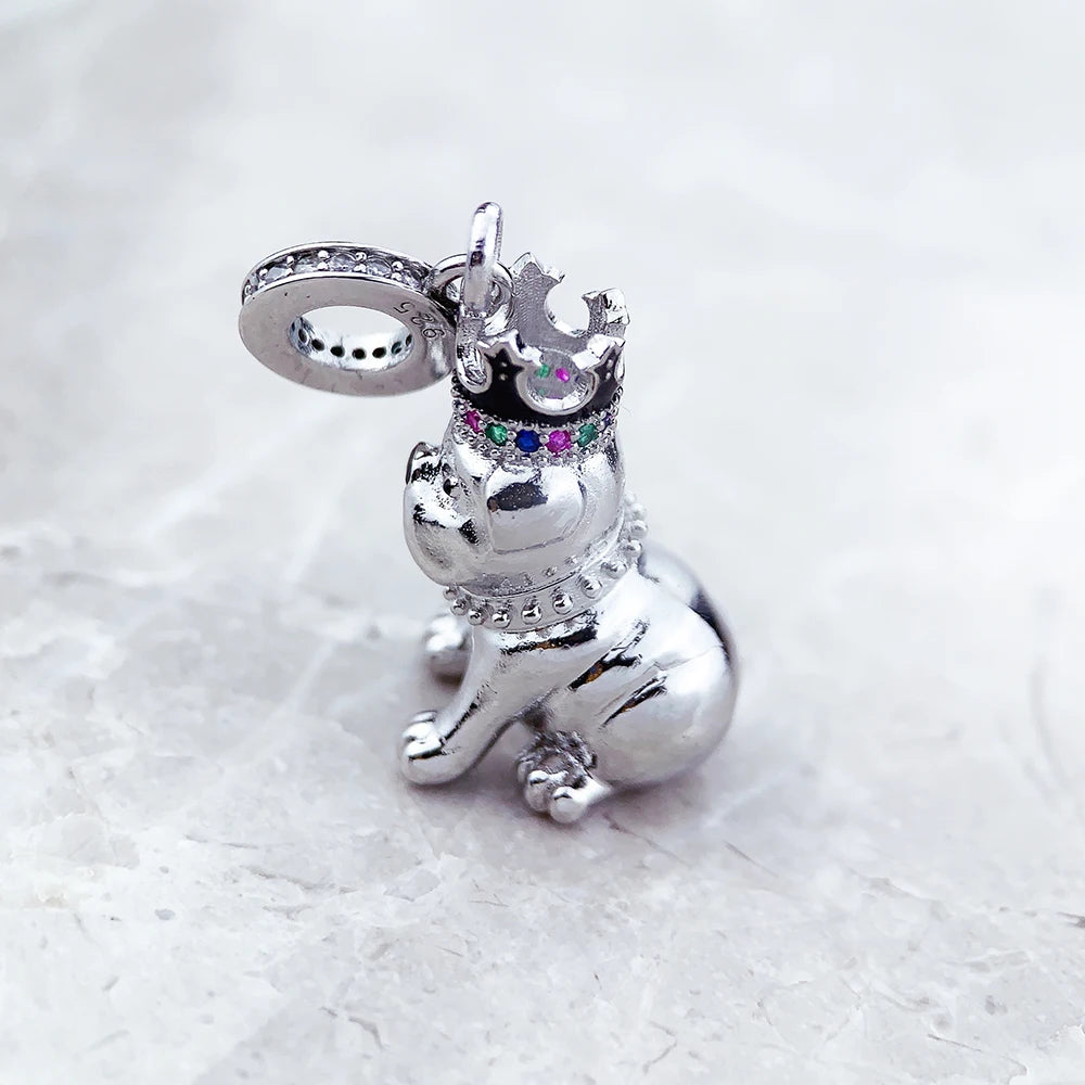 This Royal Cutie English Bulldog Silver Charm with a jeweled crown is made with love and care, just like the way you treat your furry family member. It is a sentimental gift from iLoveMy.Pet that honors that wrinkly smile and big-heart loyalty.