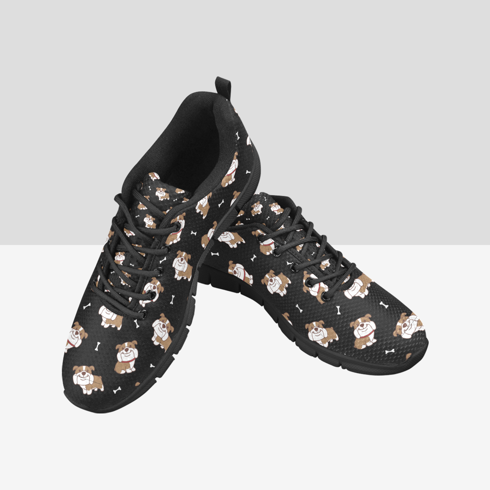 Featuring charming English Bulldog illustrations, each sneaker captures the breed's stocky build and happy expression. The playful bone elements scattered throughout add a whimsical touch, making these sneakers a true conversation starter.