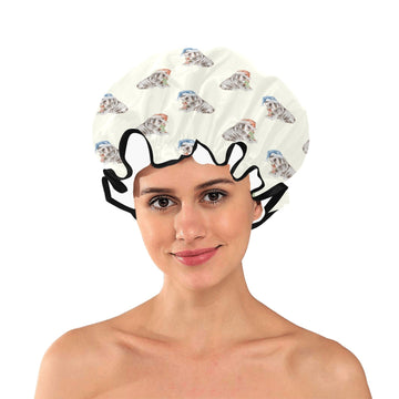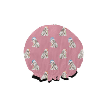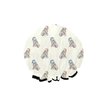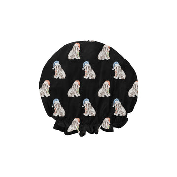 Watercolor Black Tan English Bulldogs Puppies Christmas Reusable Shower Caps