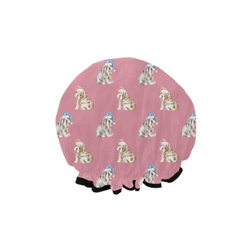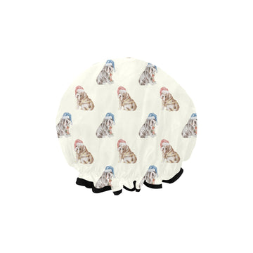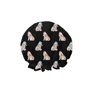 Watercolor English Bulldogs Puppies Christmas Reusable Shower Caps