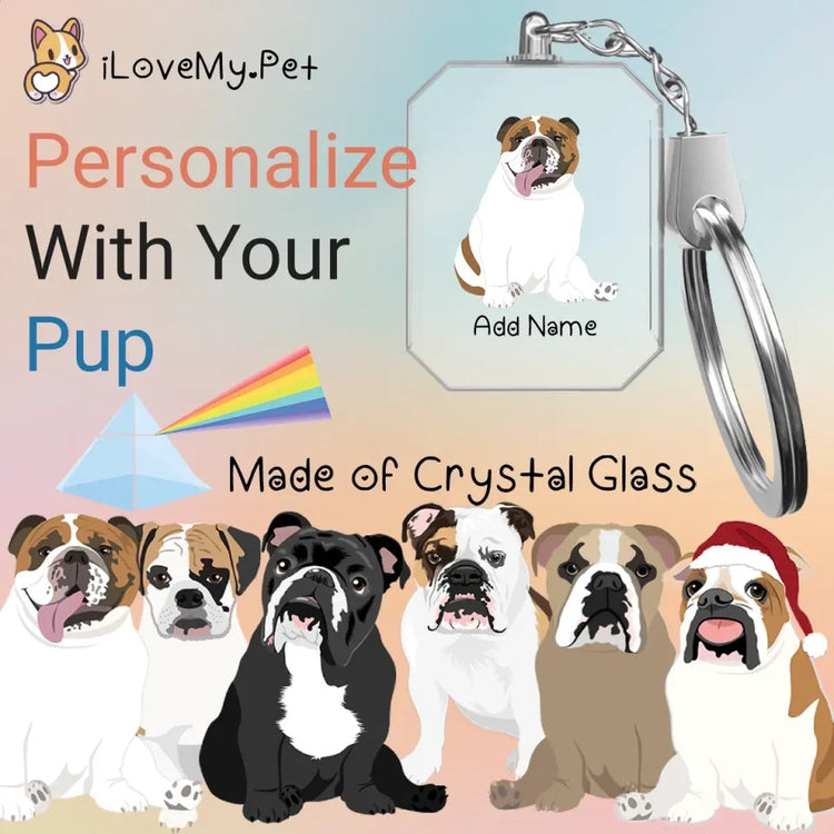 Celebrate your English Bulldog love with a personalized crystal glass keychain that captures the essence of your furry friend.