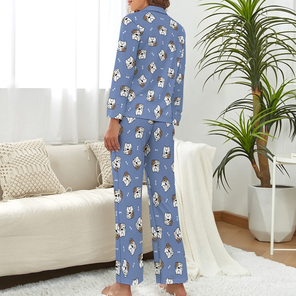 Adorable Bulldog Charm Pajamas Set for Women-S-CornflowerBlue_1-27