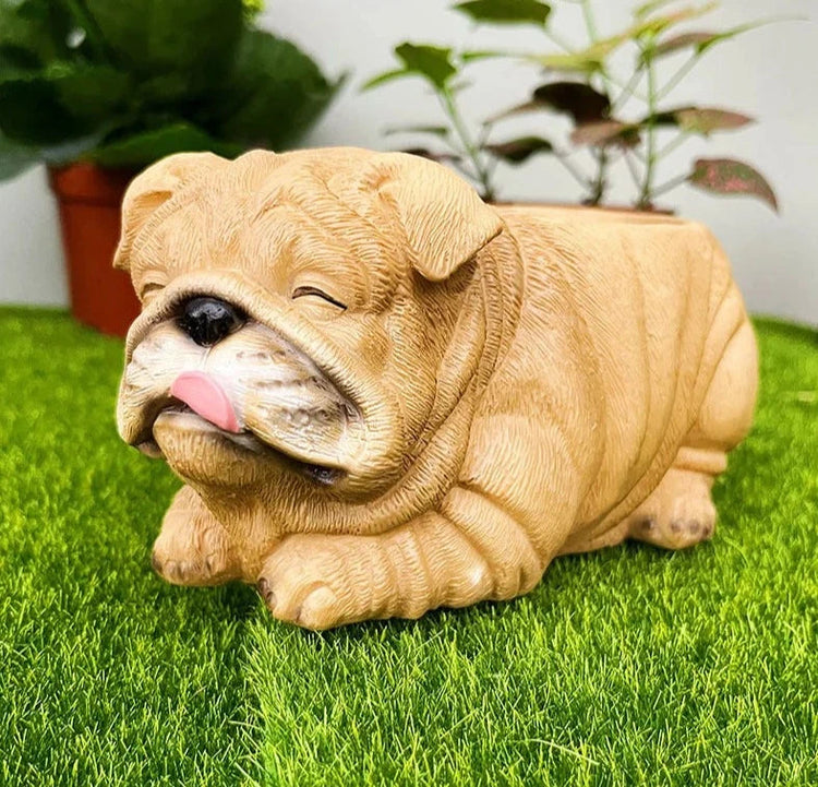 Crafted from high-quality resin, this adorable planter captures the essence of the beloved English Bulldog breed. Its realistic design features a wrinkled face and distinctive pushed-in nose, making it a charming addition to any space.