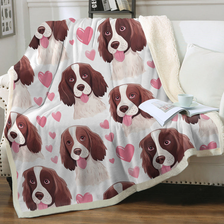 Designed with both English Springer Spaniels and their adoring owners in mind, this blanket is as vibrant and charming as the breed itself. Capturing the distinct playful and friendly nature of English Springer Spaniels, the design showcases the most adorable imagery of this beloved dog breed alongside pink hearts. This is not just a blanket; it's an embodiment of the love and companionship that English Springer Spaniels offer.