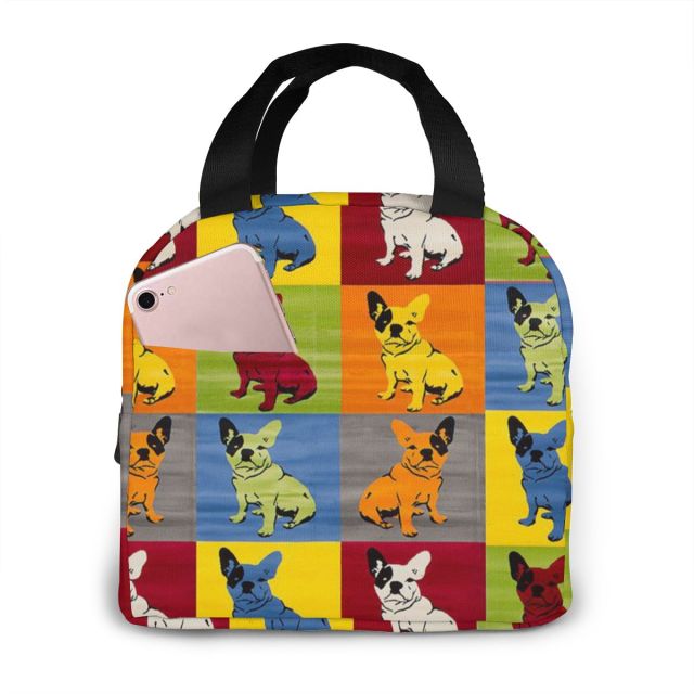 Colorful Pop Art French Bulldogs: Insulated Lunch Bag to Keep Your Lunch Warm!