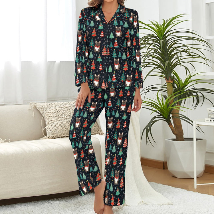 Unleash your furry love with our unique Black/Brindle French Bulldog Festive Frolic Women's Christmas Pajamas!
