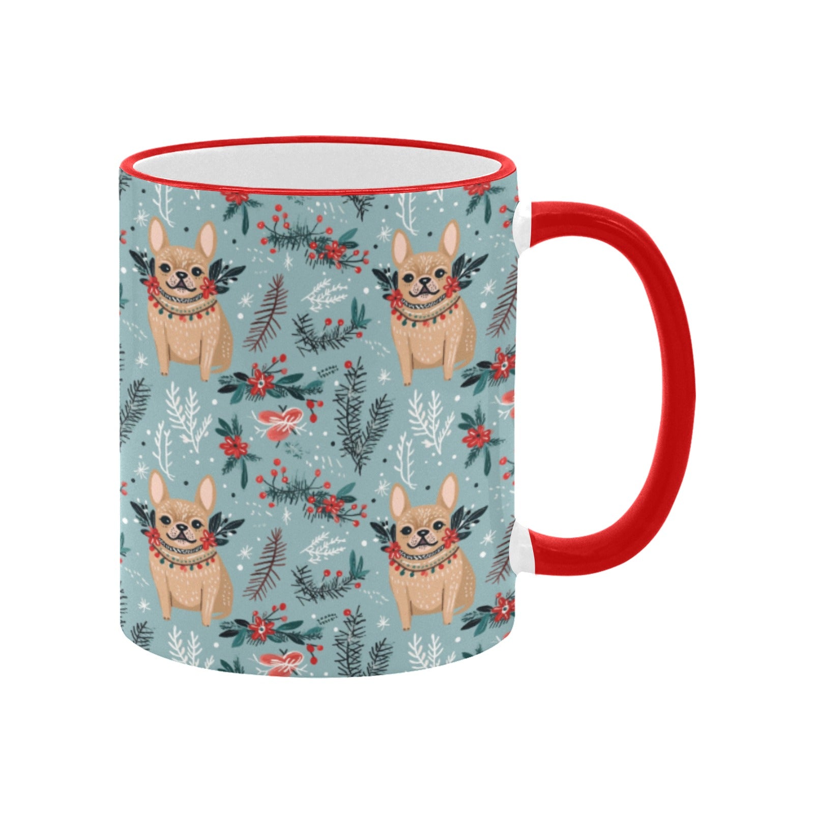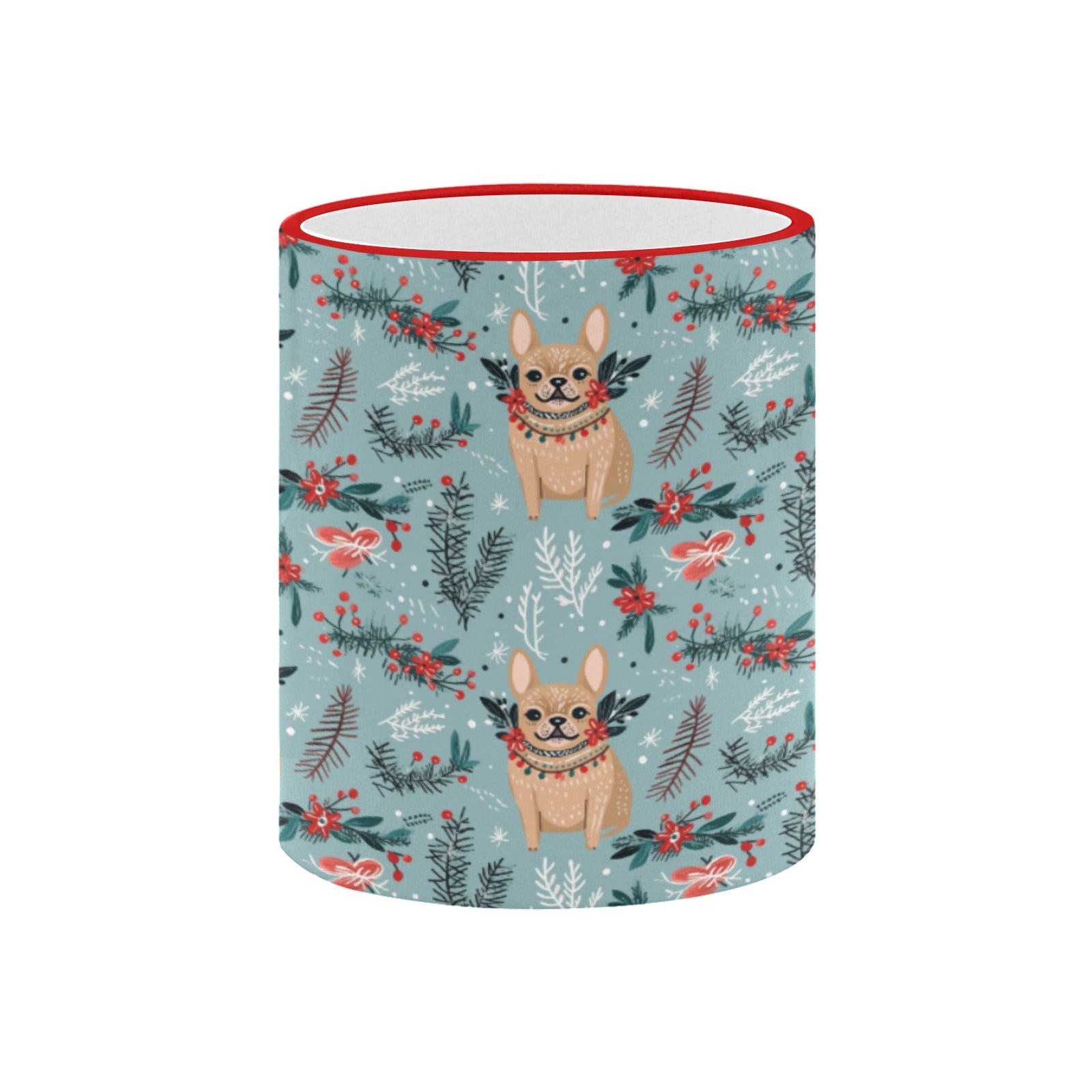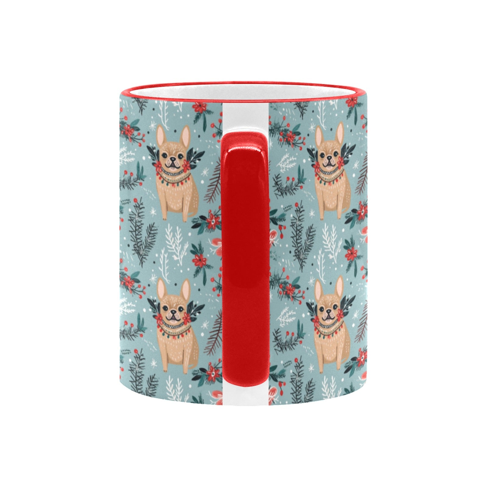 Fawn / Cream Festive French Bulldog Winter Flora Christmas Coffee Mug