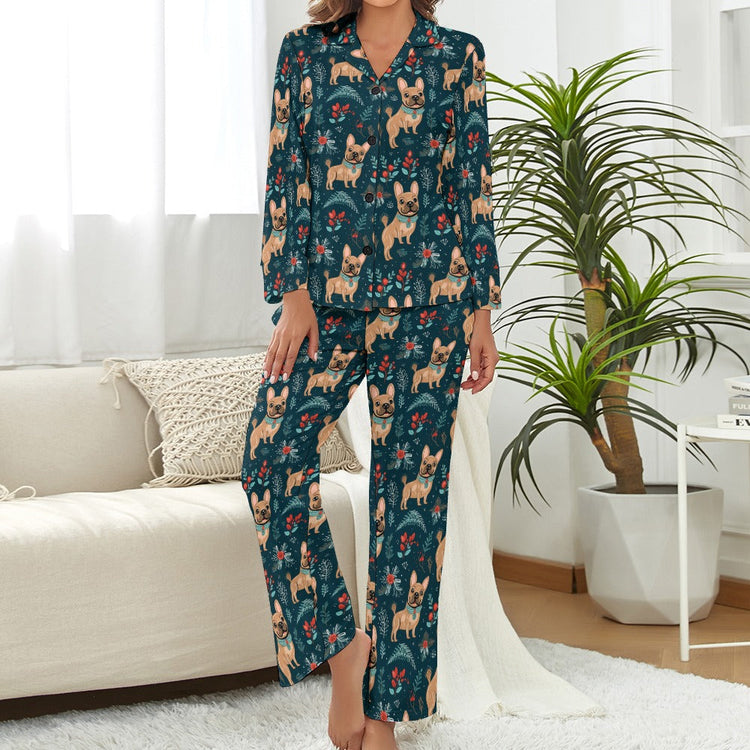 Fawn / Cream French Bulldog Festive Flair Christmas Pajamas Set for Women