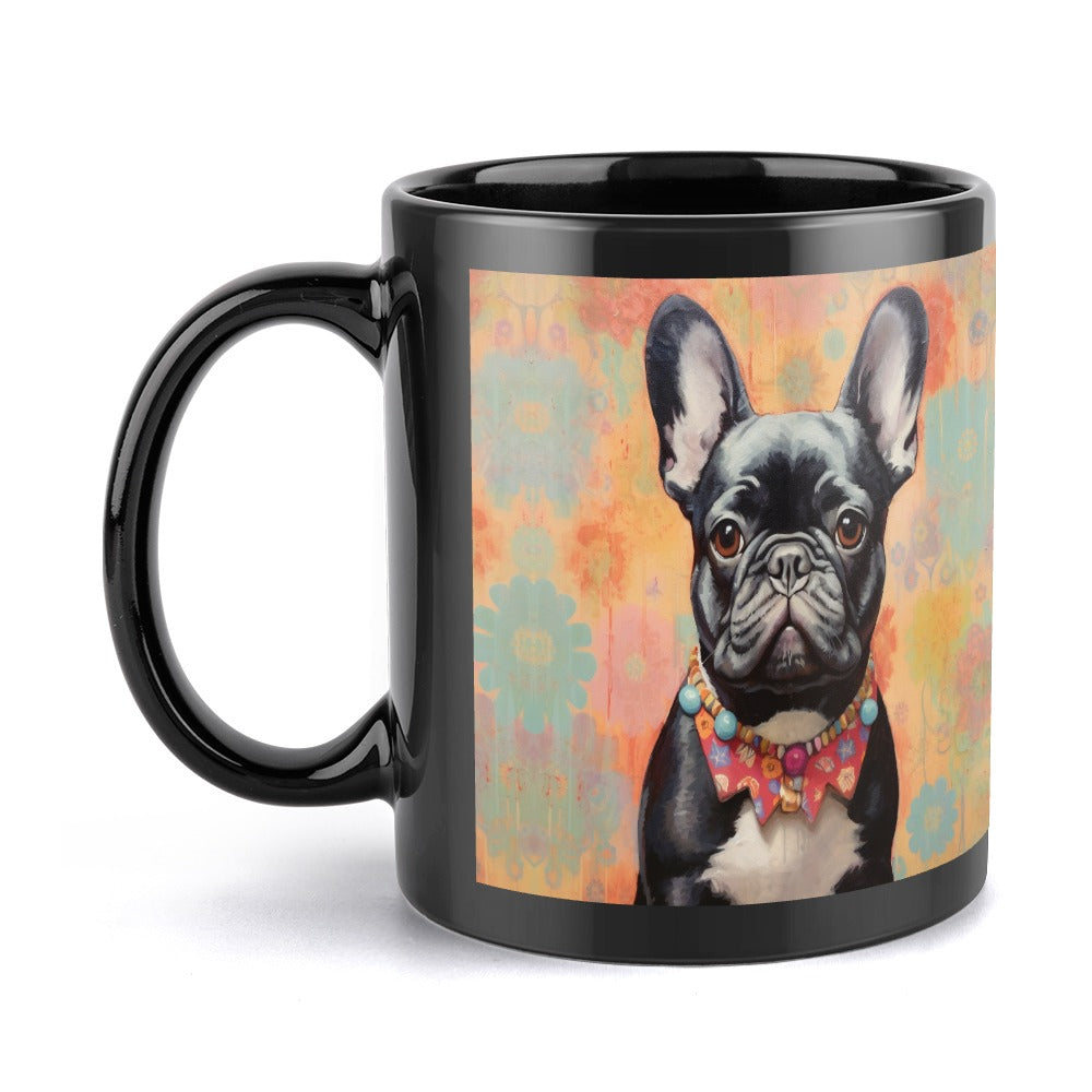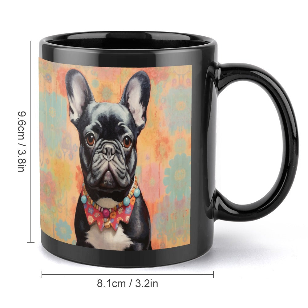 Featuring a poised French Bulldog against a softly textured floral background, this mug captures the elegance and personality of your beloved pet. The dog’s expressive eyes and signature wrinkled features are beautifully rendered, making each sip a delightful experience.