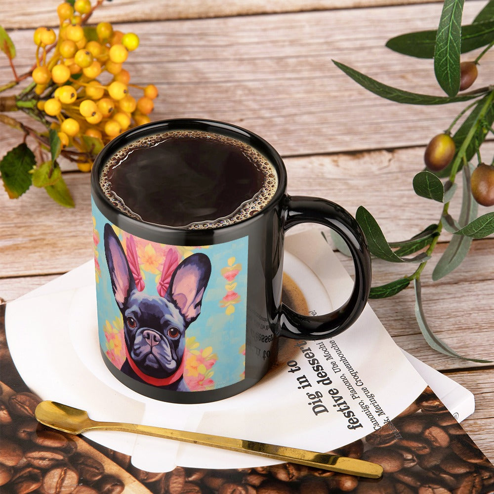 Celebrate your love for your French Bulldog with the enchanting Poise and Petals Black French Bulldog Coffee Mug.