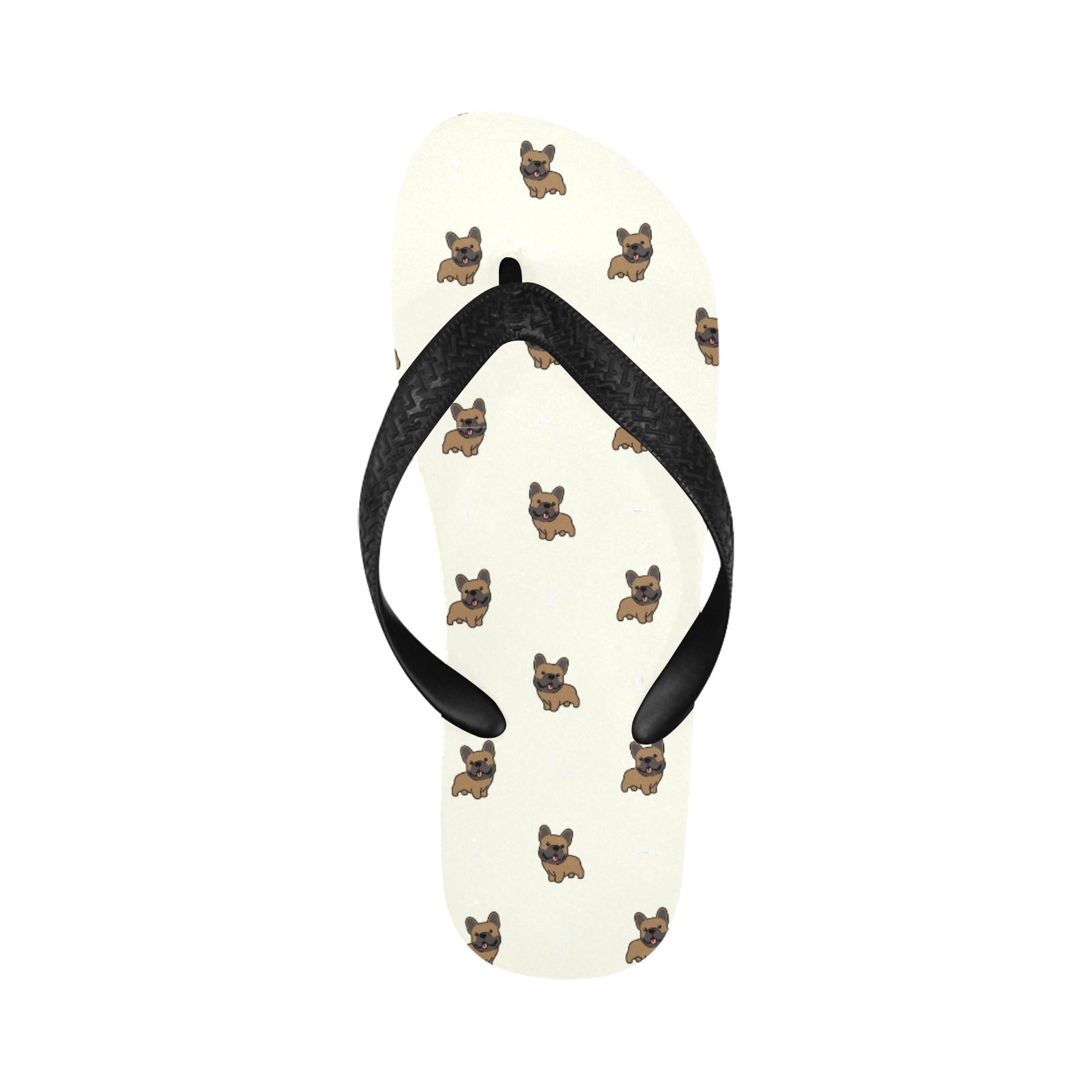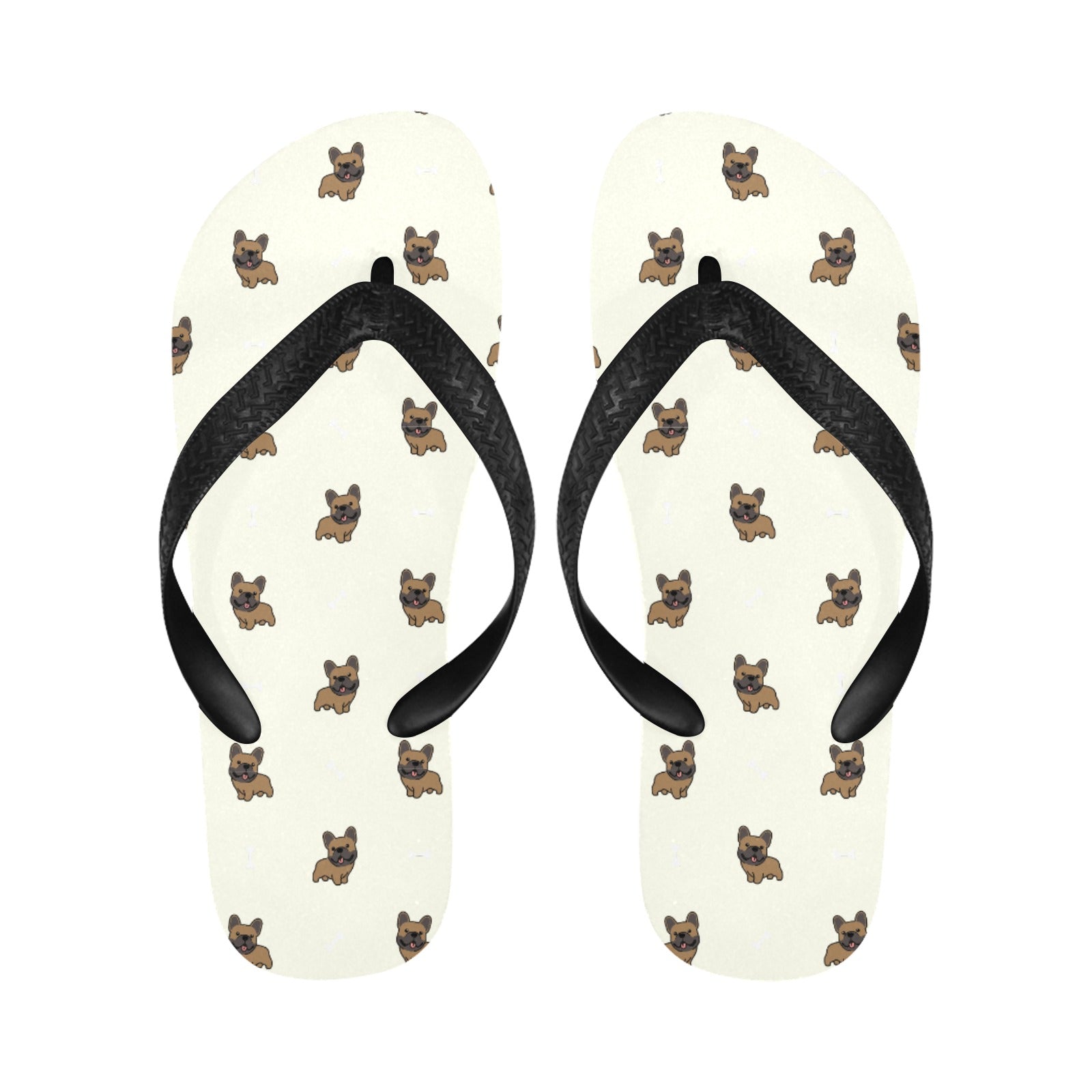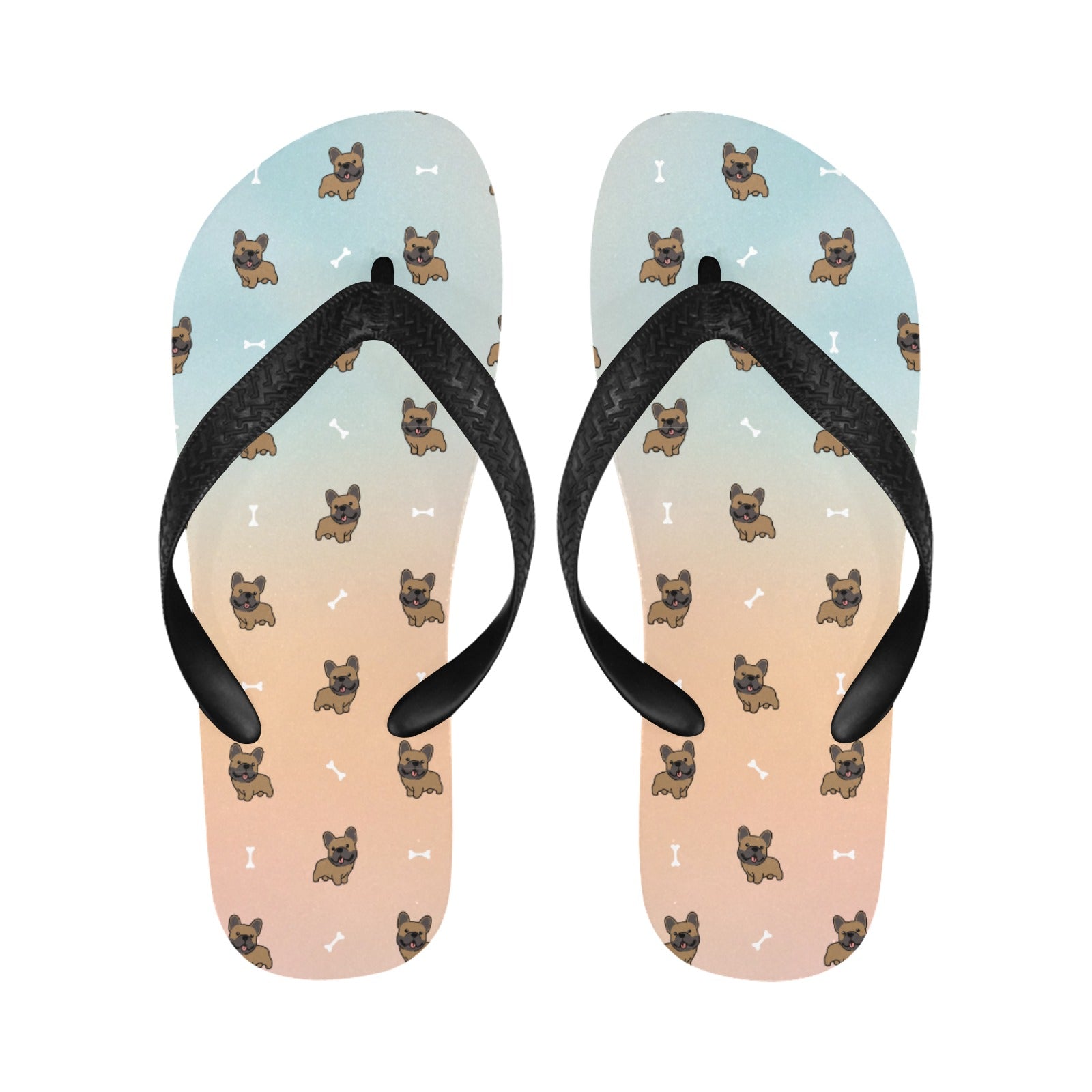 These delightful slippers feature adorable brown French Bulldogs, complete with their expressive faces and perky ears, playfully scattered against a soft background.