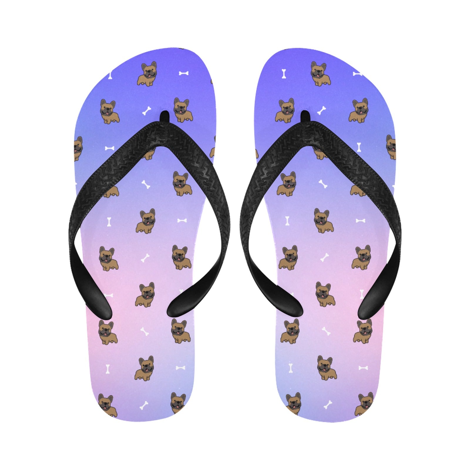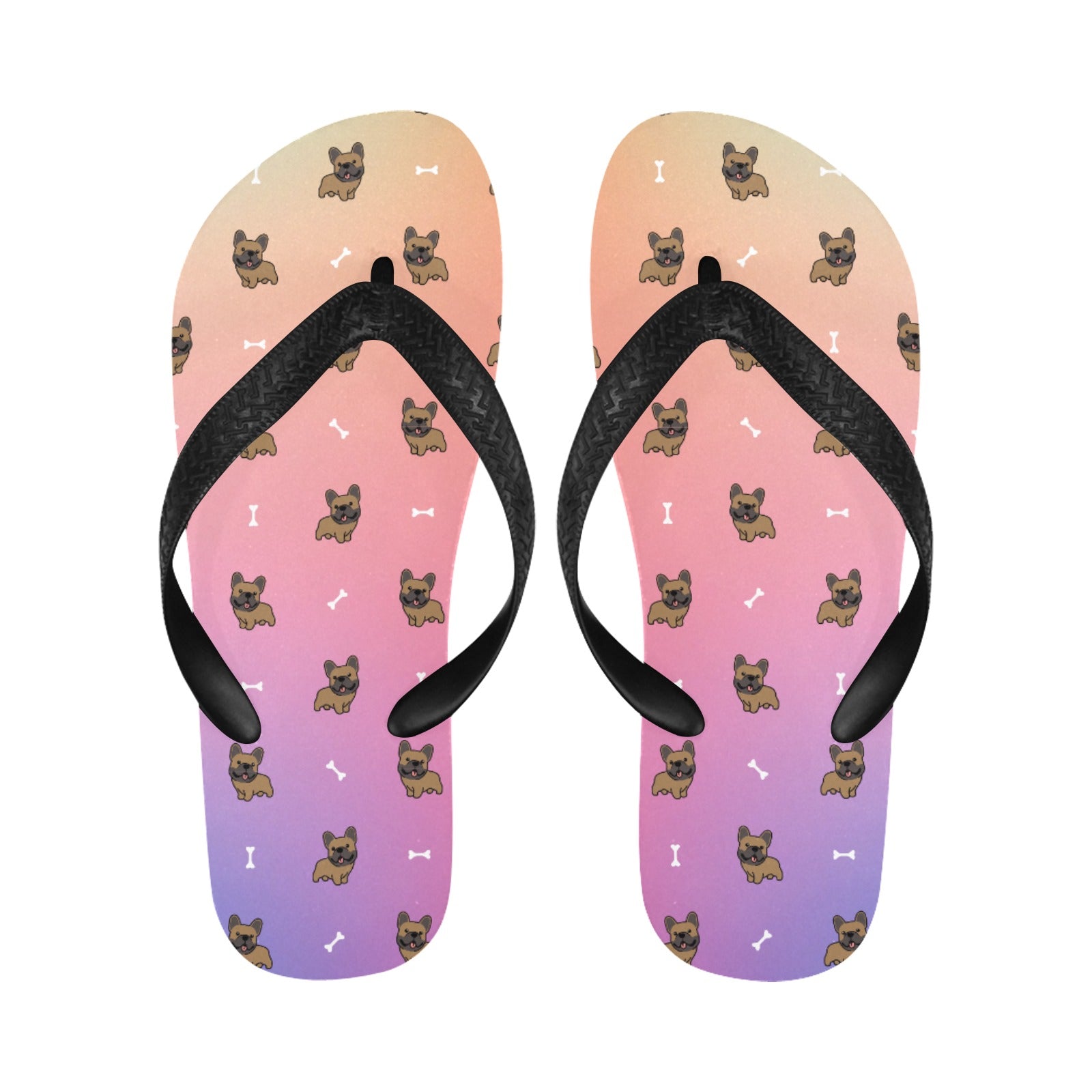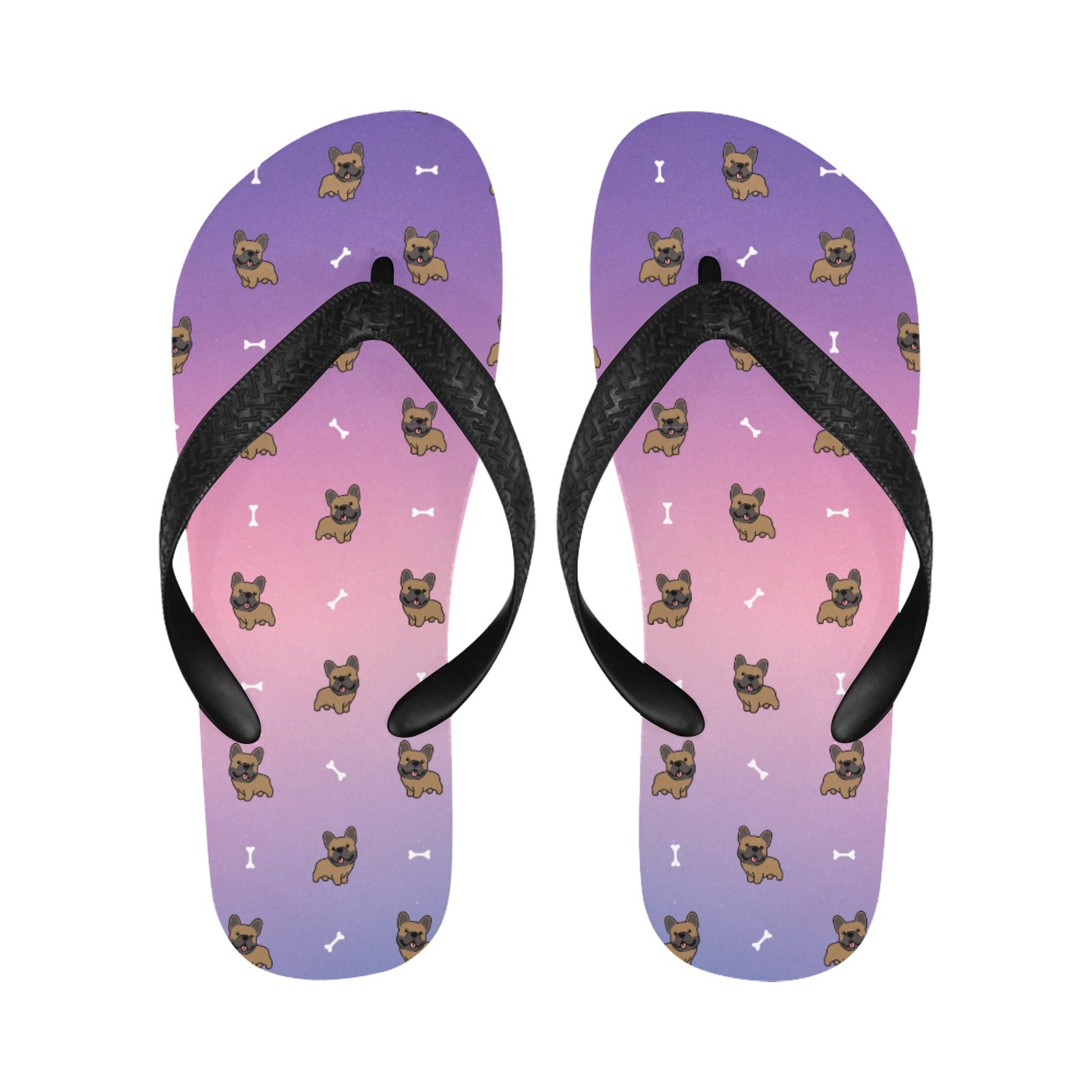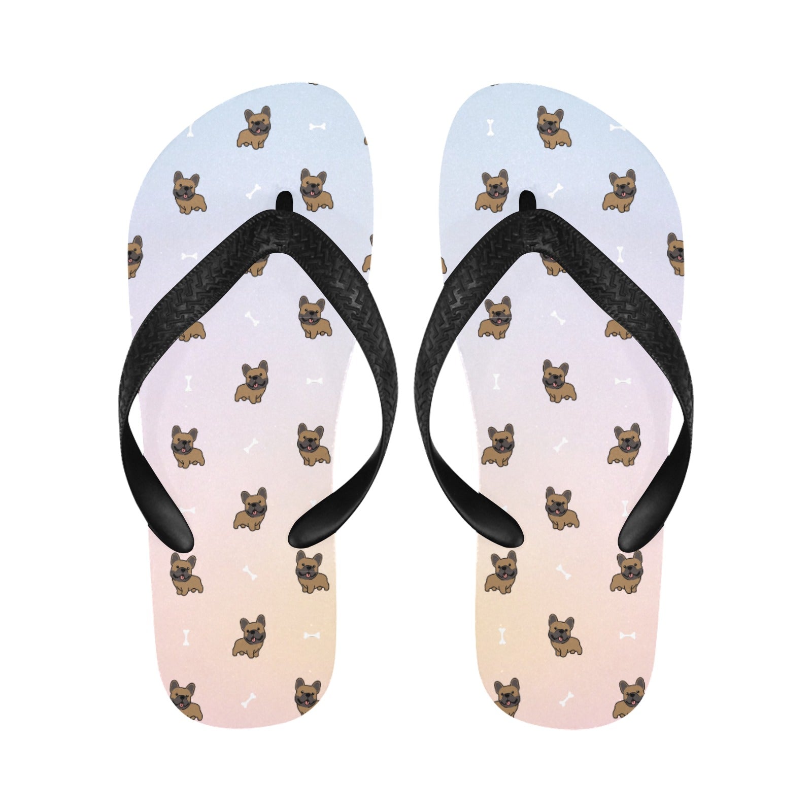 These delightful slippers feature adorable brown French Bulldogs, complete with their expressive faces and perky ears, playfully scattered against a soft background.