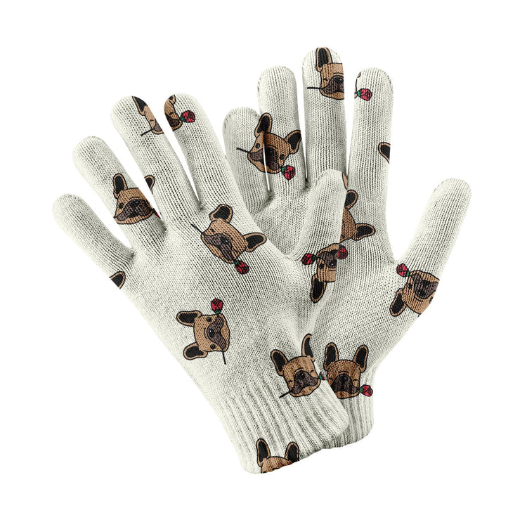Red Rose Fawn Frenchies Touch Screen Gloves