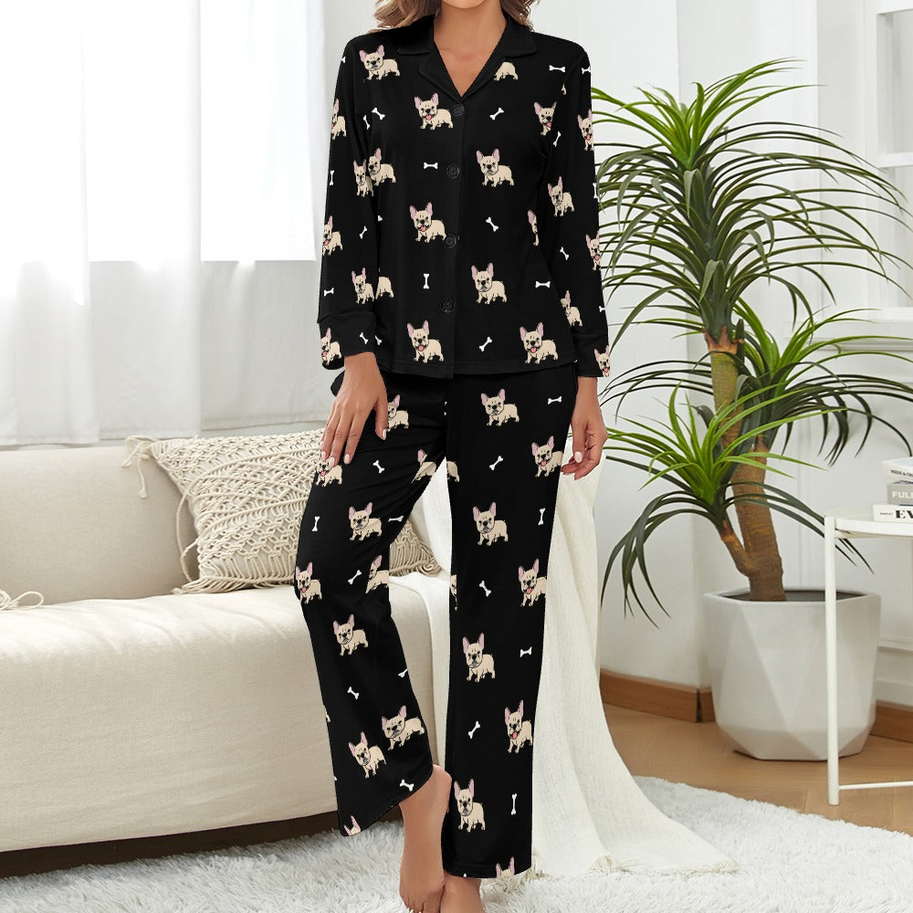 Celebrate your love for French Bulldogs with this charming pajama set. Featuring cream-colored French Bulldogs with perky ears and playful tongues, these pajamas capture the breed's lovable spirit.