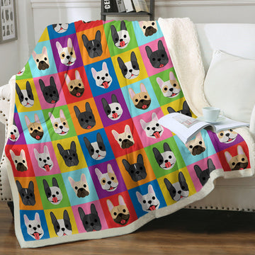 Colorful Mosaic Frenchies Love Soft Warm Fleece Blanket-Blanket-Blankets, French Bulldog, Home Decor-Small-1