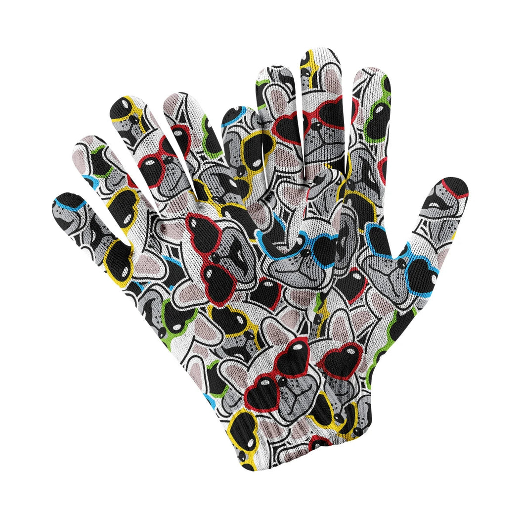 Tail-Waggingly Good Gifts for French Bulldog Lovers bring vibrant, heart-shaped sunglasses to life in a playful, overlapping pattern. These gloves are perfect for making bold, dog-inspired fashion statements that truly stand out.