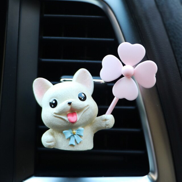 Embrace your passion for French Bulldogs with this charming car accessory that will add a touch of cuteness to every car ride. The adorable bow-tie white French Bulldog, holding a windmill toy, is ready to accompany you on all your adventures as it clips effortlessly to your car’s air conditioning vent. Not only does it make your car look stylish, but it also serves as a delightful aroma diffuser to keep your car smelling fresh and pleasant.