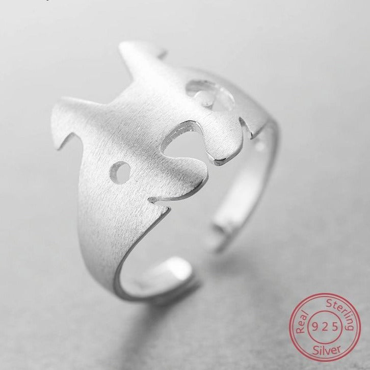 If you're a French Bulldog lover, this beautiful silver ring is designed especially for you. Crafted with love and precision, this 925 Sterling Silver ring features a laser-cut shape of an abstract French Bulldog, making it a unique and eye-catching piece of jewelry.