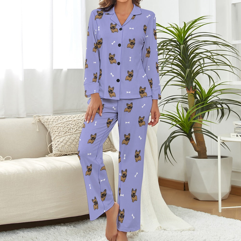 French Chocolate Bulldog Charm Pajamas Set for Women