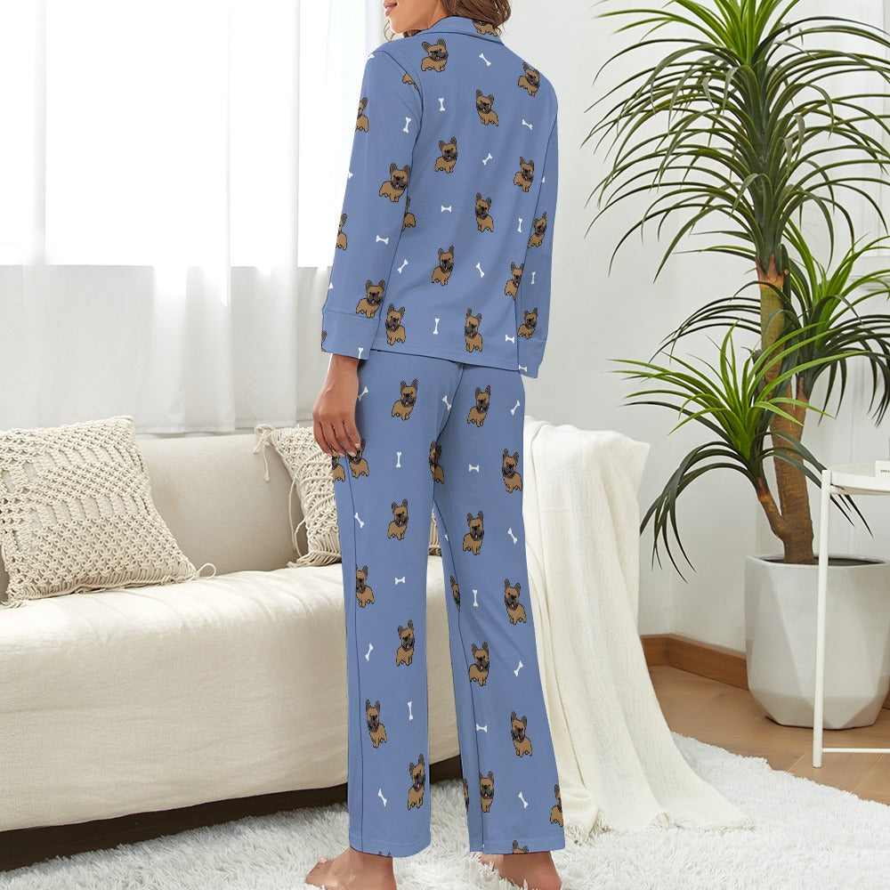 French Chocolate Bulldog Charm Pajamas Set for Women-S-CornflowerBlue-16