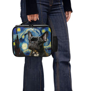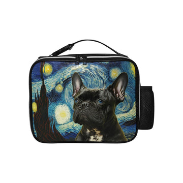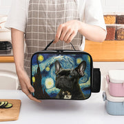 This unique lunch bag brings to life a poised French Bulldog against the iconic, swirling backdrop of Van Gogh's “The Starry Night.”